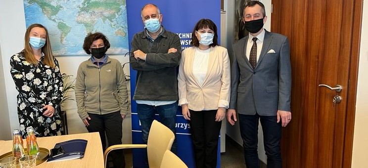 W dniu 9 marca Politechnikę Rzeszowską odwiedziła delegacja z Hiszpanii z Universidad Rey Juan Carlos (Madryt). Uczelnia jest uczelnią partnerską PRz w programie Erasmus. Andrés Martínez Fernández ( Vicerrector de Planificación y Estrategia) i prof. Rosa María Viejo García (Área de Biodiversidad y Conservación, Departamento de Biología y Geología, Física y Química Inorgánica) przyjął prorektor ds. studenckich prof. dr hab. Grzegorz Ostasz. W spotkaniu uczestniczyły również mgr Edyta Ptaszek i mgr Monika Stanisz z Działu Współpracy Międzynarodowej. Delegacja przedstawiła ofertę przyjęcia na uczelnie hiszpańskie nauczycieli/naukowców z Ukrainy, którzy w obecnej sytuacji poszukują zatrudnienia w europejskich uczelniach. Uczelnie hiszpańskie oferują miejsca zatrudnienia wraz z pokryciem kosztów dojazdu i zakwaterowania. W związku z brakiem kontaktów uczelni hiszpańskiej w Ukrainie zwrócono się do PRz z prośbą o pośredniczenie w kontaktach z uczelniami ukraińskimi i rozpowszechnienie informacji o ofercie.
