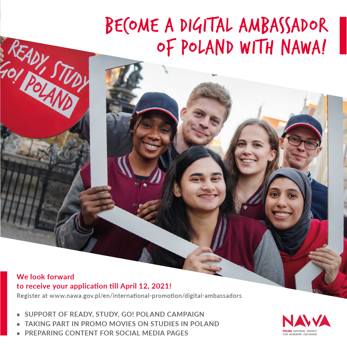 - wsparcie kampanii Ready, Study, GO! Poland prowadzonej przez NAWA;