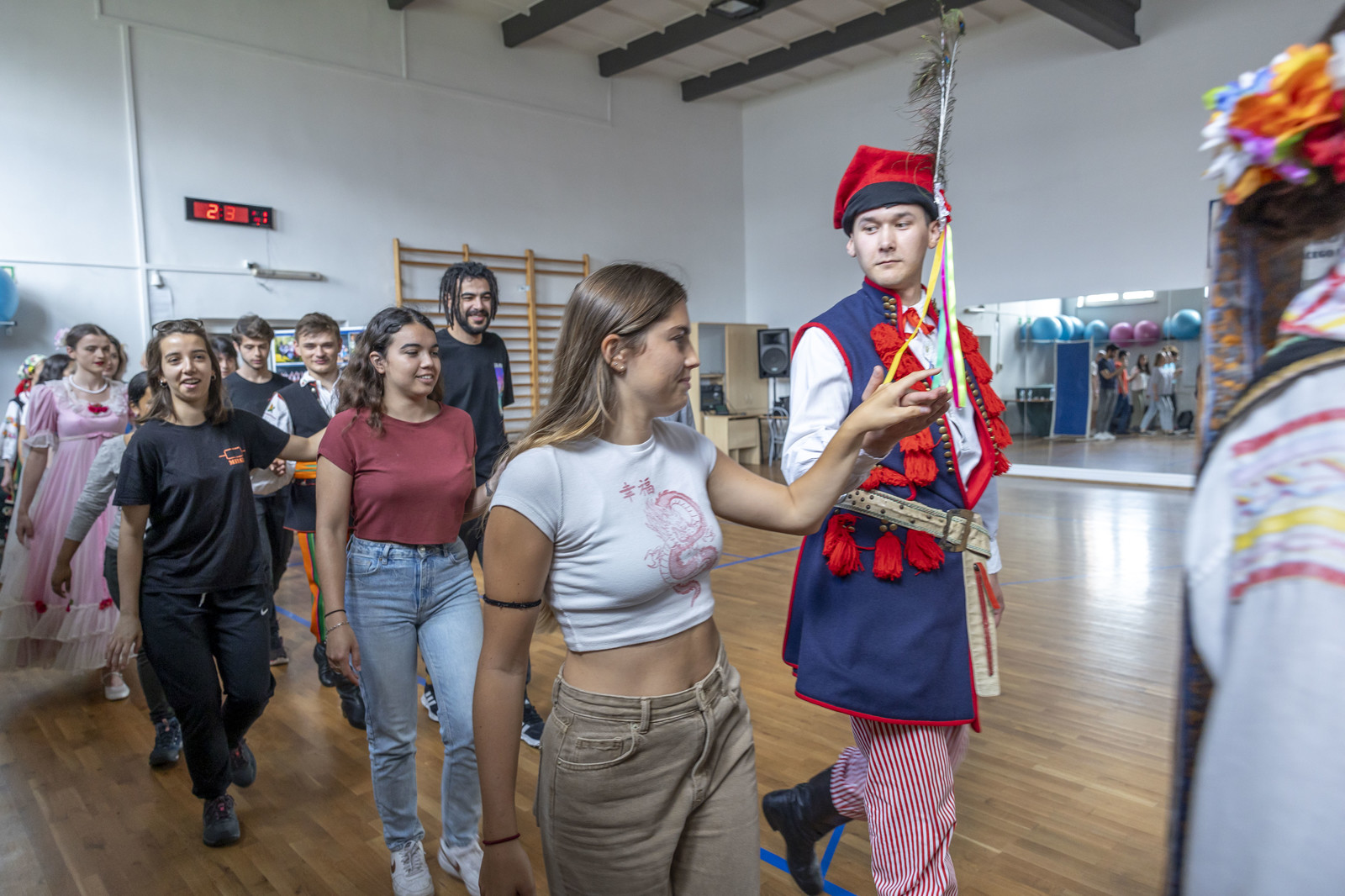 Naszym tańcem narodowym pożegnaliśmy studentów programu Erasmus. Część z nich była z nami od początku roku akademickiego, a część przyjechała na semestr letni. Łącznie 48 studentów zakończyło studia w ramach programu Erasmus na Politechnice. Mamy nadzieję, że czas spędzony wymianie zawsze zostanie w ich pamięci. Z niektórymi zobaczymy się w kolejnym semestrze roku akademickiego 2023/24 gdyż cześć studentów ponownie wybrała Politechnikę na uczelnię, w której zrealizuje swoją mobilność. Dlatego mówimy do zobaczenia!