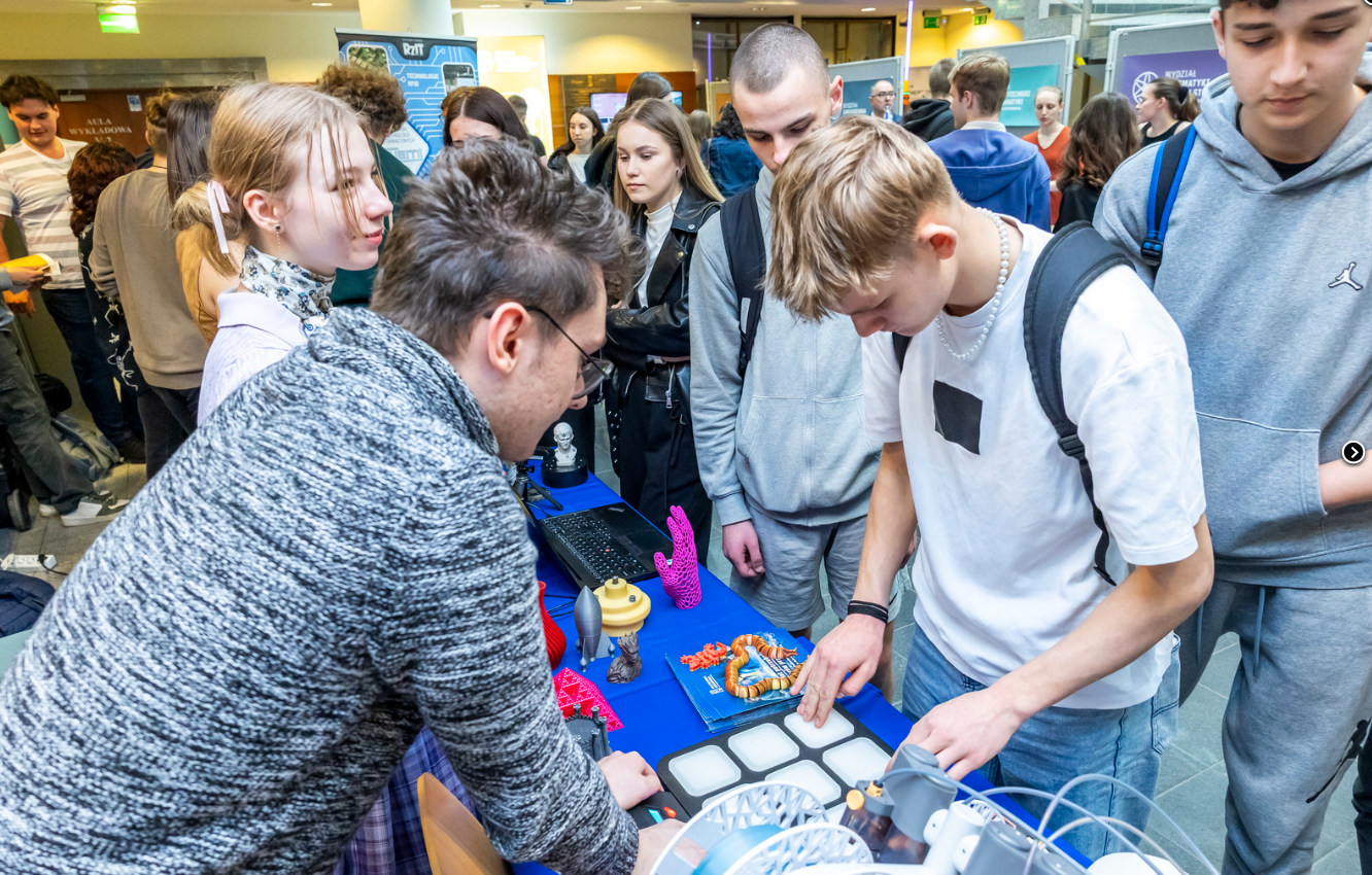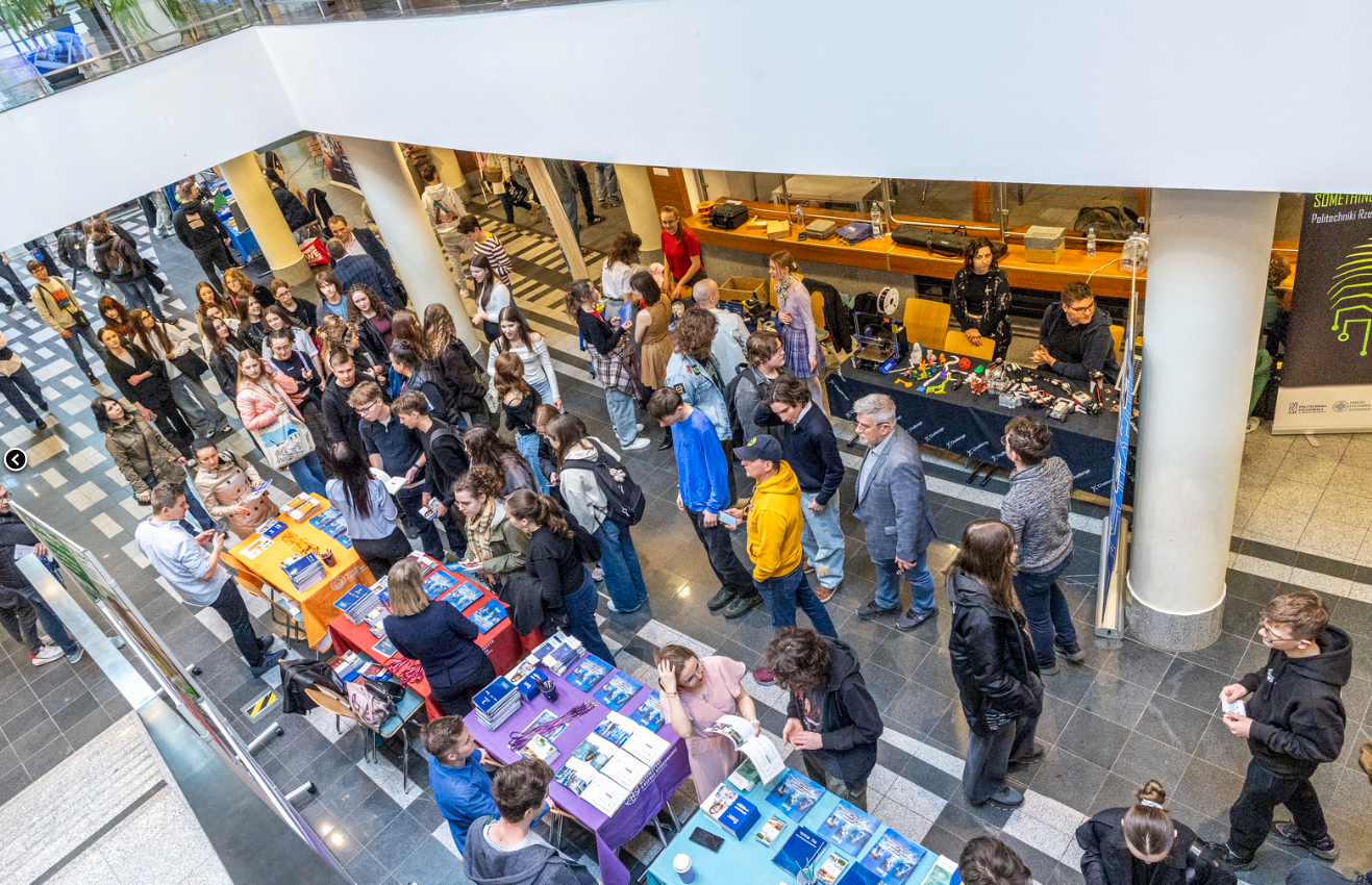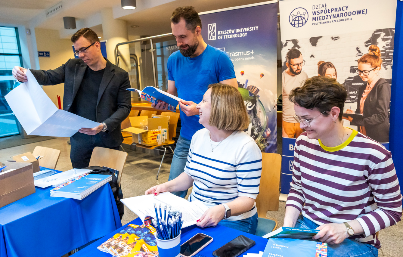 4 kwietnia 2025 r. podczas Dnia Otwartego PRz, uczniowie szkół średnich odwiedzający naszą uczelnię mieli okazję porozmawiać z pracownikami Działu Współpracy Międzynarodowej. Młodzież pytała o możliwość studiowania za granicą. Przyszli studenci byli zainteresowani wyjazdami w ramach programu Erasmus oraz studiami w Chinach. Nasze stoisko odwiedzali także obcokrajowcy zainteresowani studiami na PRz. Pytania dotyczyły dokumentów uprawniających do podjęcia studiów, opłat za studia oraz możliwości zakwaterowania w akademikach.