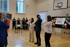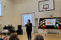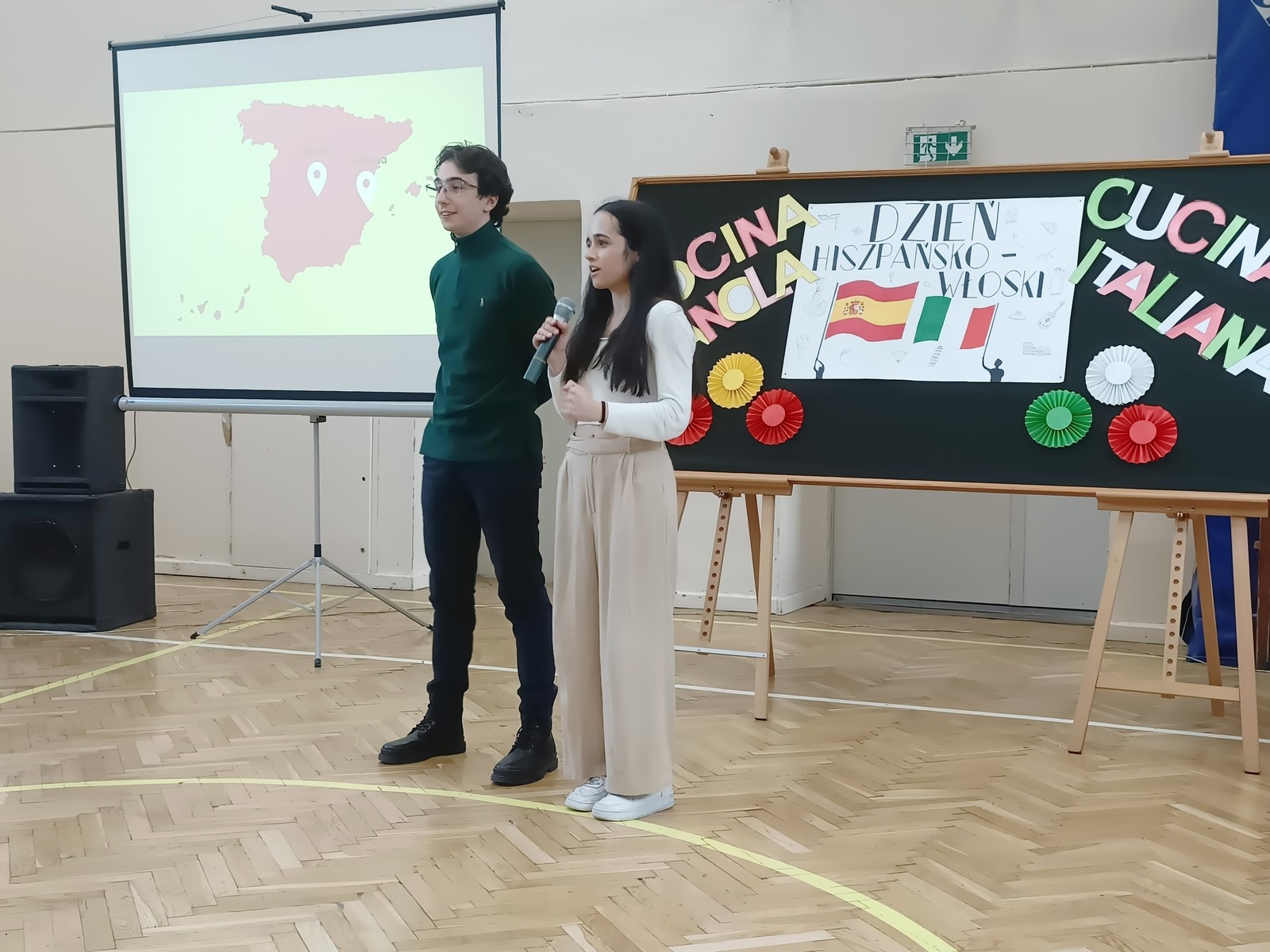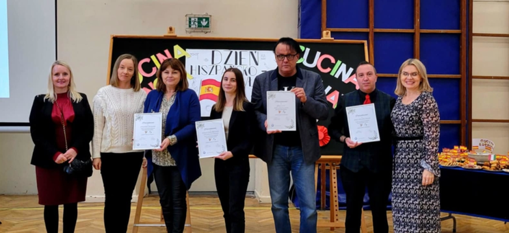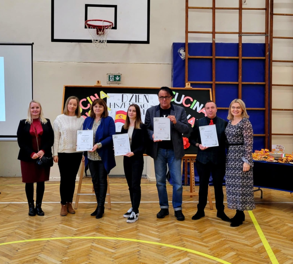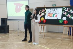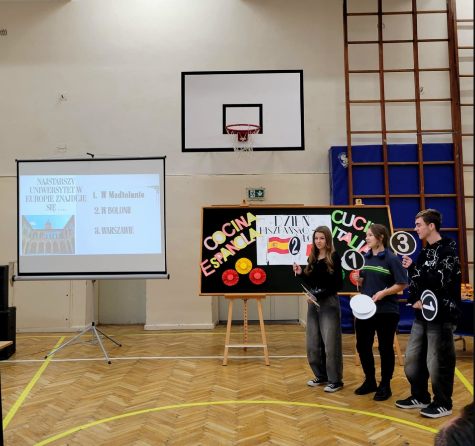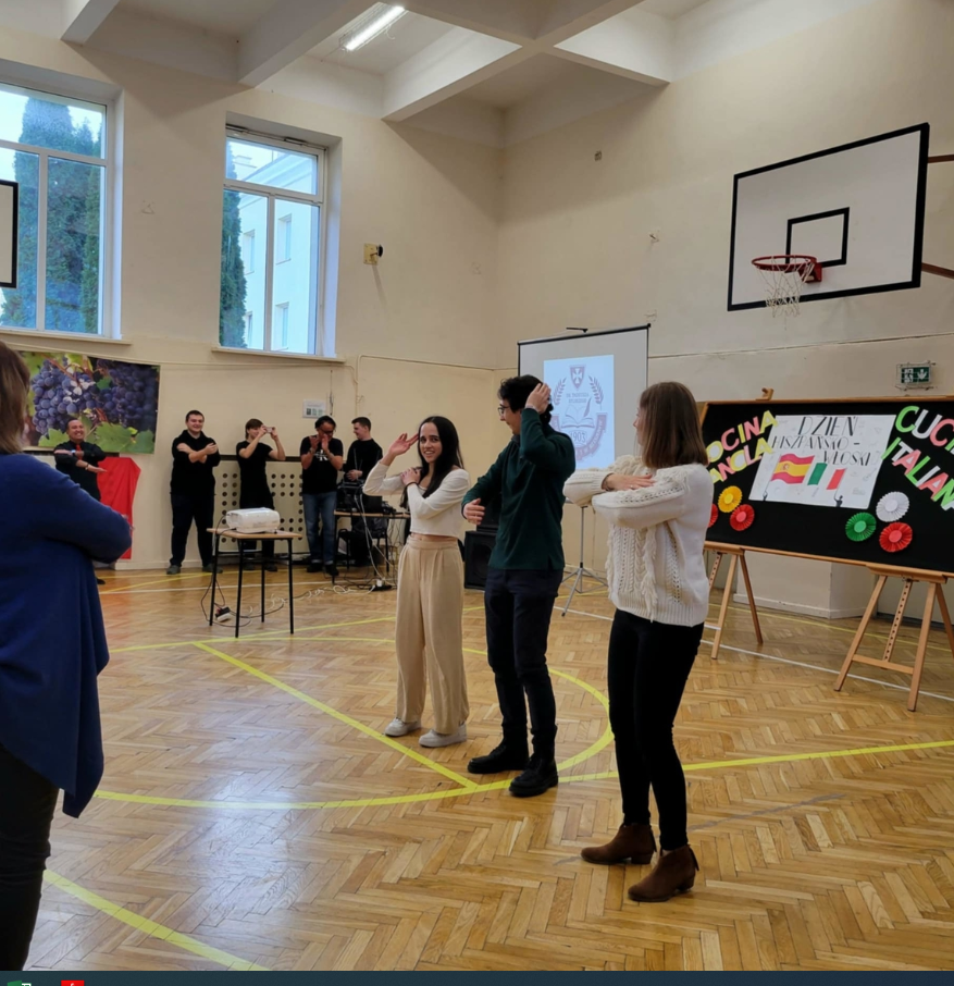 Uczniowie mieli okazję nawiązać konwersację w języku hiszpańskim i włoskim, oglądnęli prezentację przygotowaną przez Hiszpanów, wzięli udział w quizie wiedzy o Hiszpanii i Włoszech, wspólnie bawili się w rytmach hiszpańsko- włoskich degustując potrawy kuchni hiszpańskiej, włoskiej i polskiej przygotowane przez uczniów Zespołu Szkół nr 3.