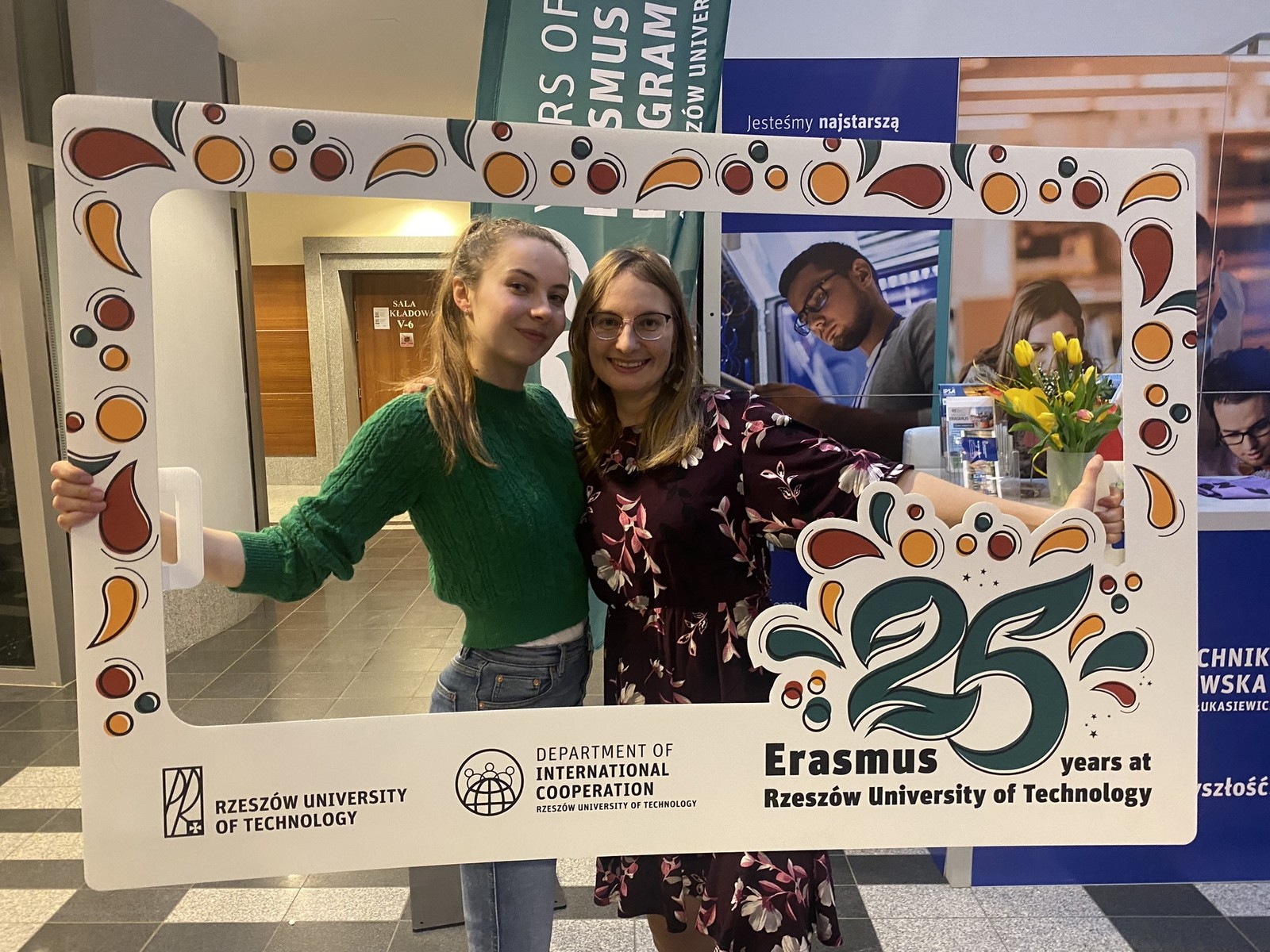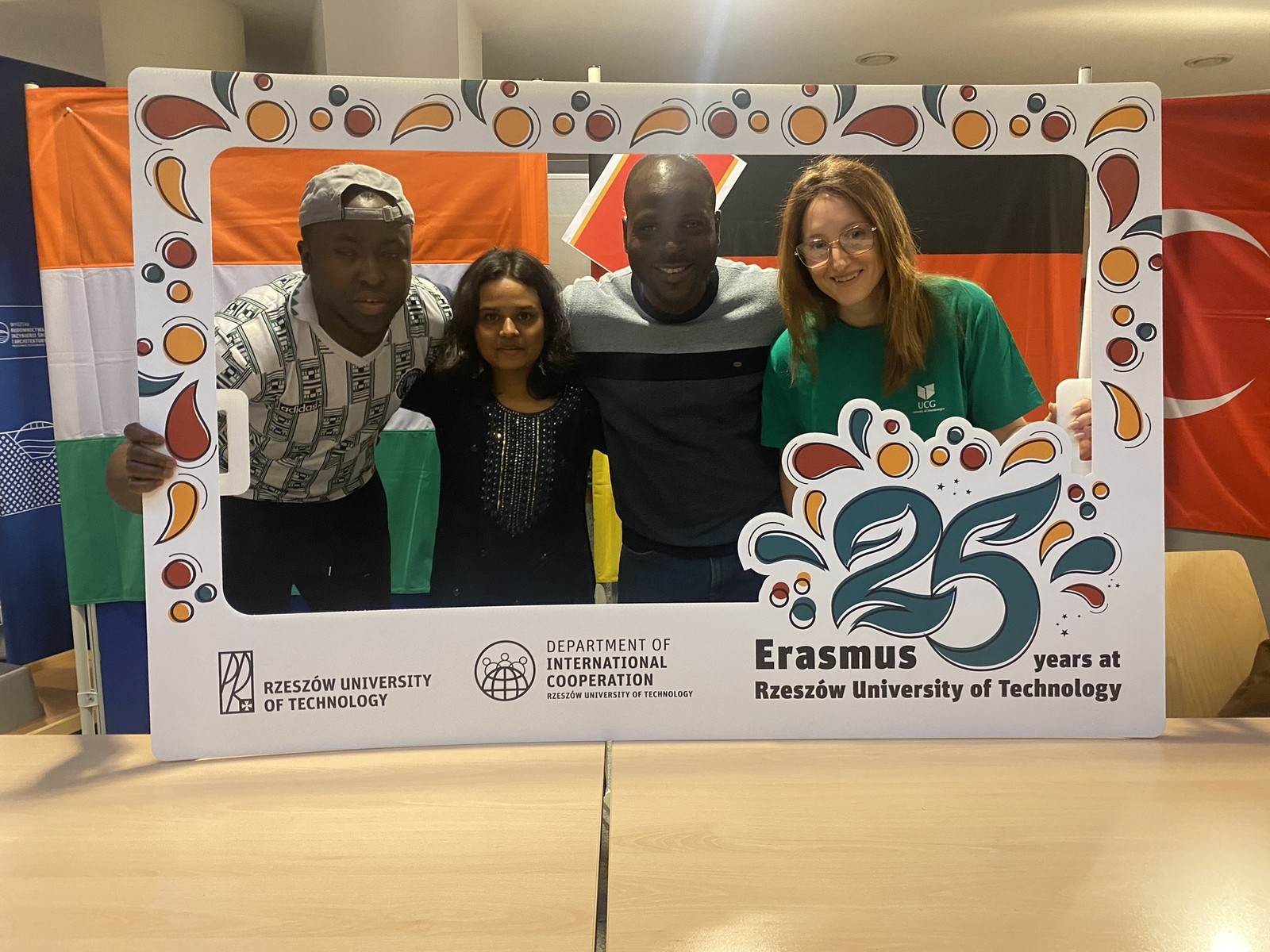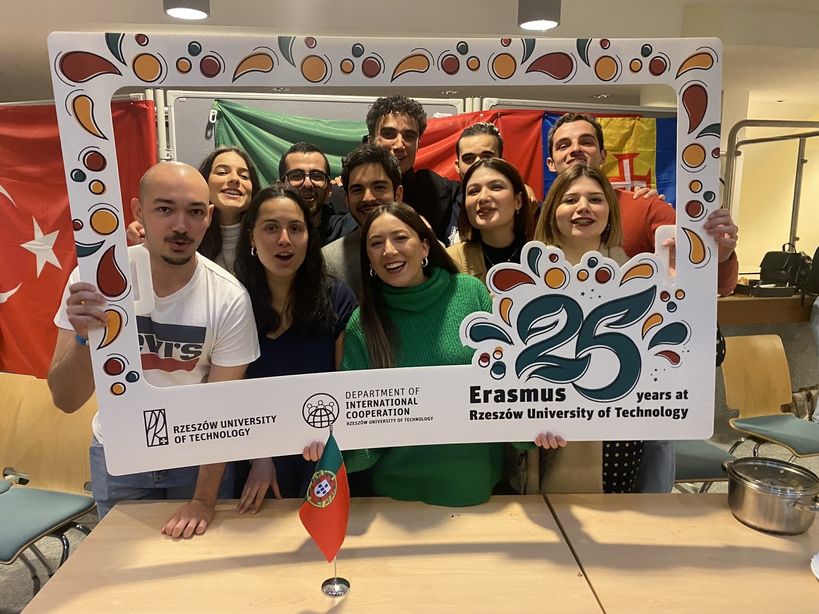 Było kolorowo, wesoło, a przede wszystkim międzynarodowo. 9 marca 2023 r. na Erasmus Cafe w Politechnice Rzeszowskiej, spotkali się uczestnicy programu Erasmus: studenci z uczelni partnerskich, absolwenci programu z Politechniki Rzeszowskiej oraz wszyscy zainteresowani by w przyszłości wziąć udział w Programie. Wydarzenie zorganizowane przez Dział Współpracy Międzynarodowej rozpoczęło obchody 25-lecia Programu Erasmus na Politechnice Rzeszowskiej.