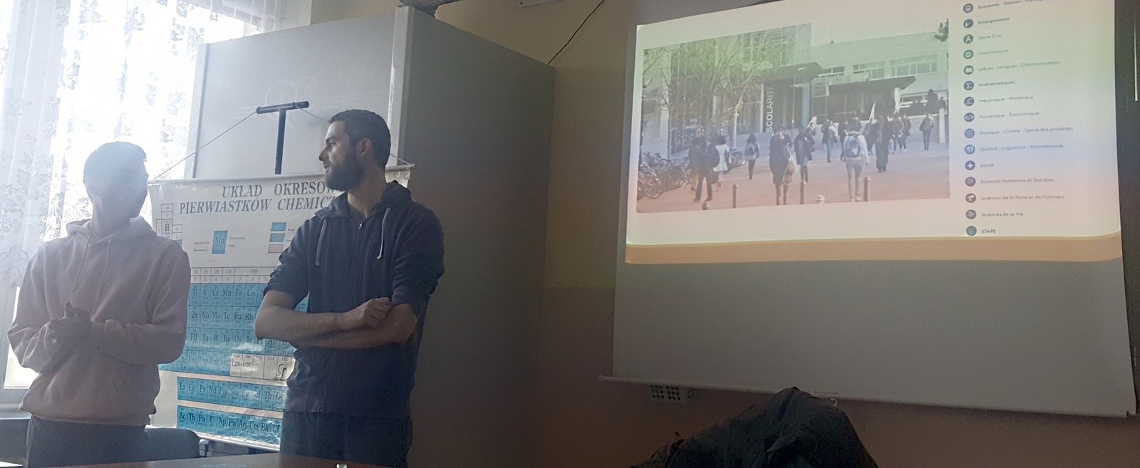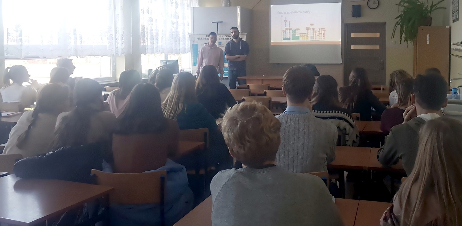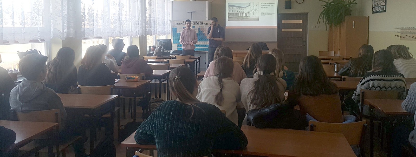 3 grudnia w IV Liceum Ogólnokształcącym im. M. Kopernika w Rzeszowie odbyło się spotkanie ze studentami z Francji, którzy przebywają w Rzeszowie w ramach programu Erasmus+. W tej oryginalnej lekcji uczestniczyły grupy uczące się języka francuskiego z różnych klas. Maxence i Valentin z Université de Nantes przybliżyli uczniom historię i kulturę pięknego regionu Pays de la Loire, z którego pochodzą. Opowiedzieli także o ich uczelni oraz o programie Erasmus+. Podkreślali, że dzięki udziałowi w tej wymianie mają możliwość poznania wielu osób, Polski, Politechniki Rzeszowskiej i naszego miasta, że są pełni nowych, pozytywnych wrażeń.