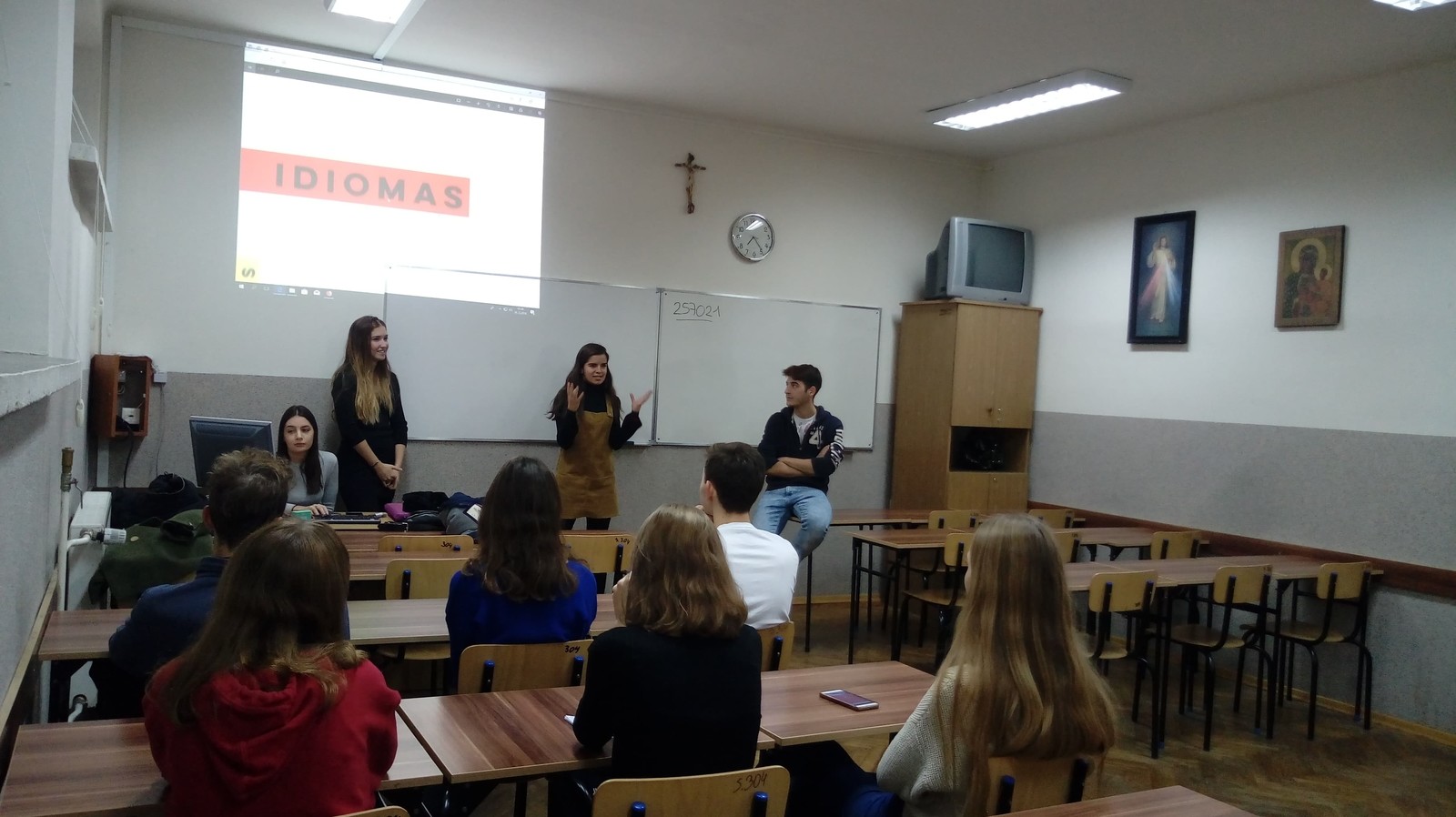 Z kolei 6 grudnia Carla Perez Garcia, Monica Martin Robaina, David Rico Sanchez, Vladimira Pavlova Sarbinska z hiszpańskiego Universidad Rey Juan Carlos uczestniczyli w lekcjach języka hiszpańskiego w II Liceum Ogólnokształcącym im. płk. Leopolda Lisa-Kuli. Studenci z entuzjazmem opowiadali uczniom o języku, kulturze, tradycjach i kuchni hiszpańskiej, zachęcając w ten sposób do odwiedzenia tego pięknego kraju.