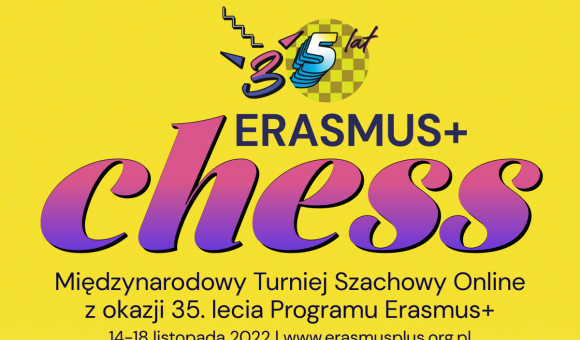 To już 35 lat programu Erasmus+! Wspólnie świętujmy europejskie wartości i kształtujmy lepsze jutro! Jednym z wydarzeń organizowanych w ramach obchodów 35- lecia Programu jest I Międzynarodowy Turniej Szachowy Online Erasmus+ Chess, który odbędzie się 14-18 listopada 2022.