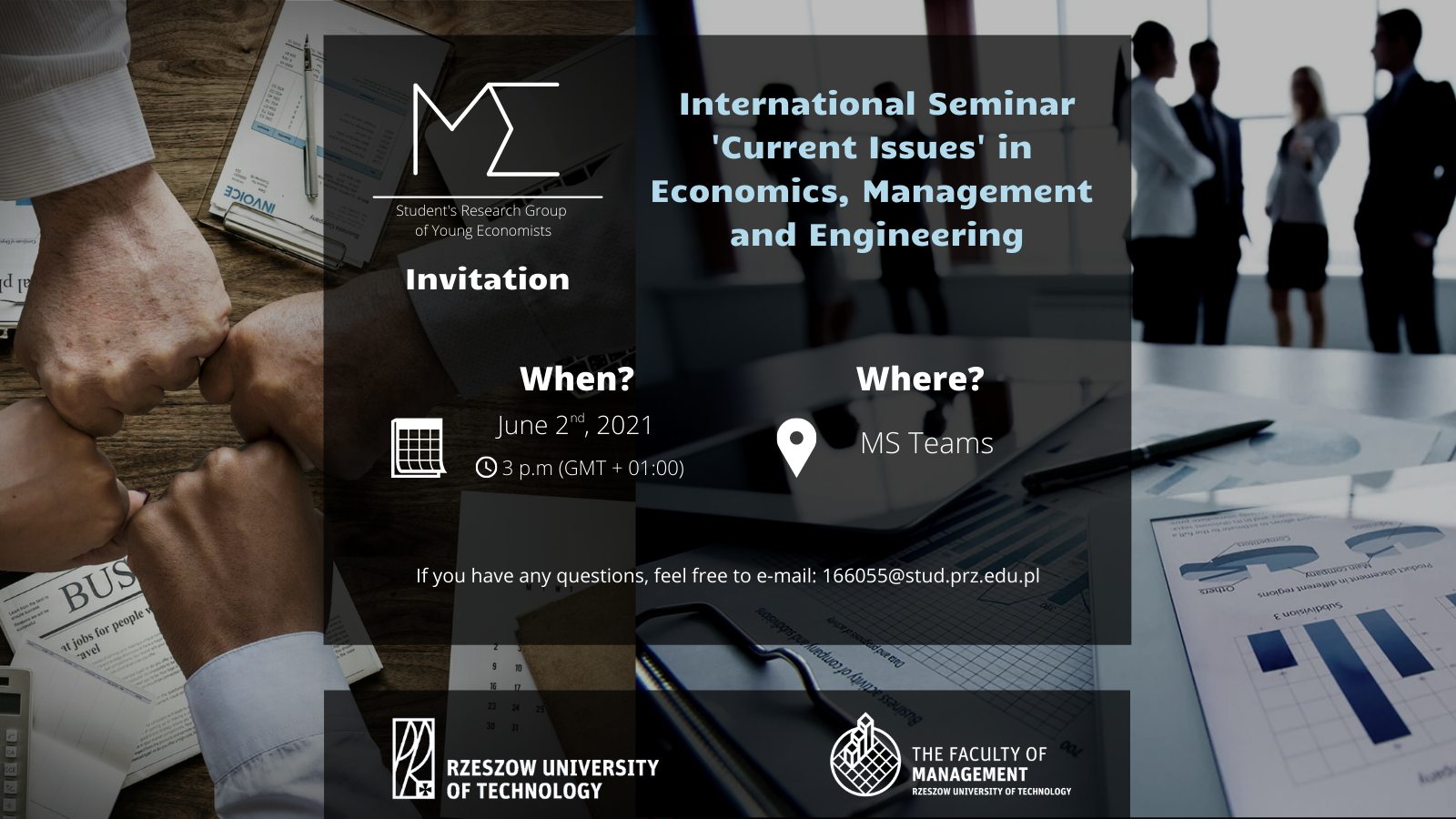 Zapraszamy na Międzynarodowe seminarium zorganizowane przez Koło Naukowe Młodych Ekonomistów pod opieką dr Marzeny Hajduk-Stelmachowicz