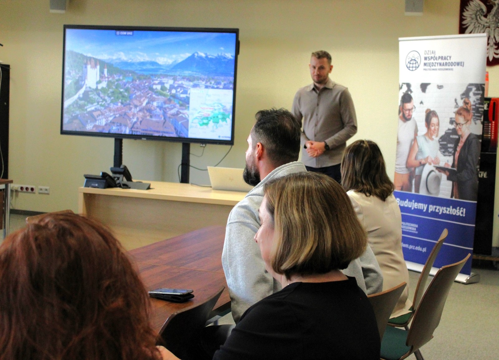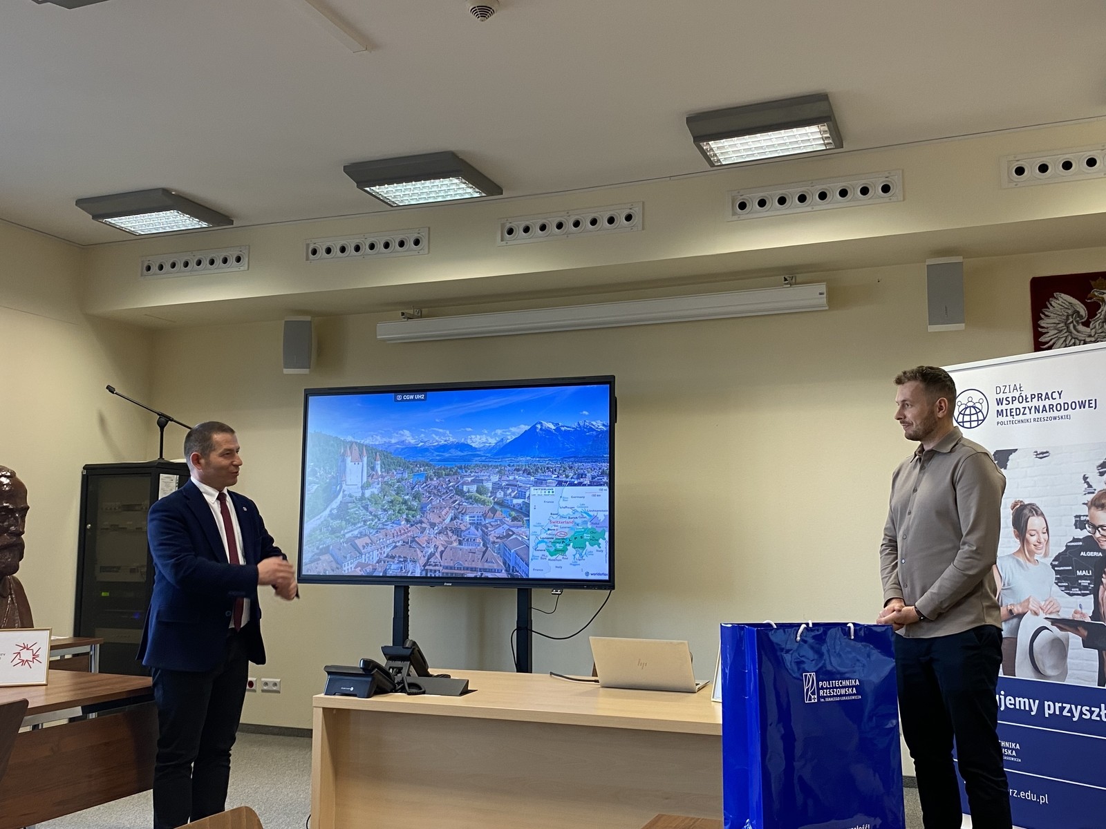 Przedstawiciele uczelni na czele z prorektorem dr hab. inż. Bartoszem Millerem prof. PRz oraz dr hab. inż. Maciejem Motyką prof. PRz uroczyście powitali w murach naszej uczelni dr inż. Krzysztofa Wieczerzaka, który rozpoczyna pracę naukową w Politechnice Rzeszowskiej.