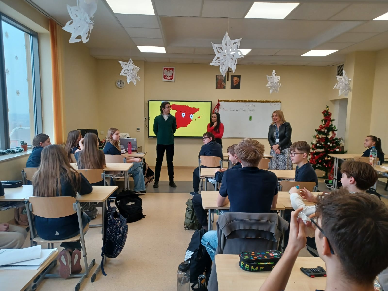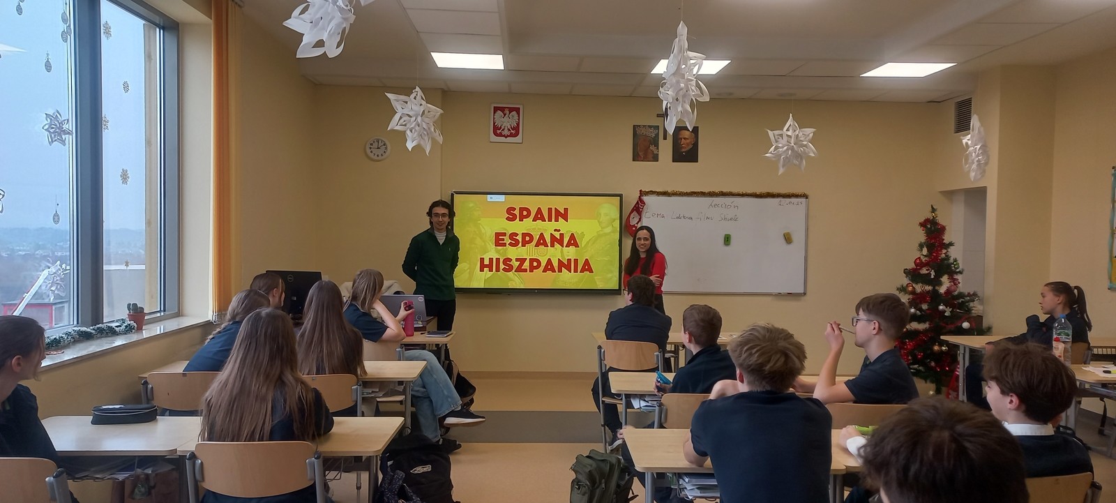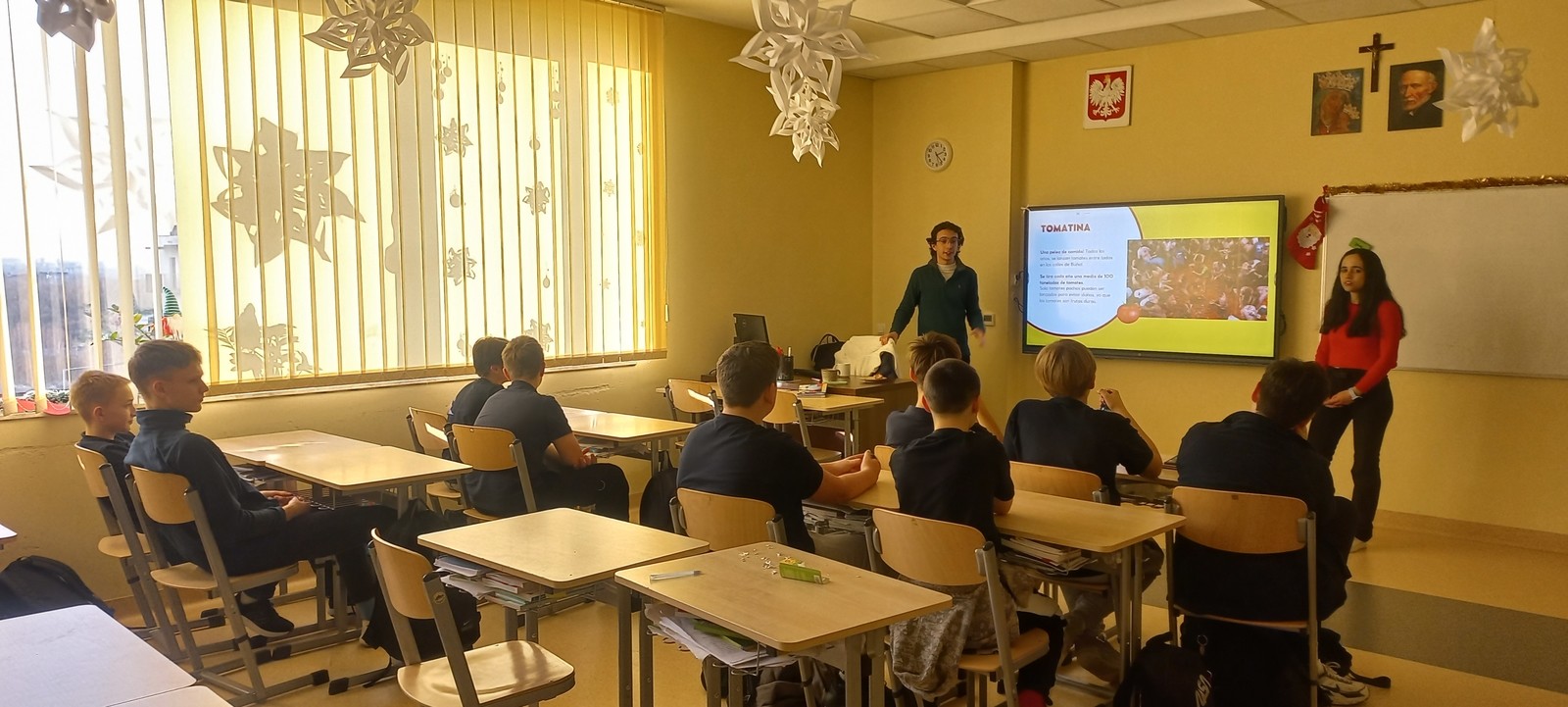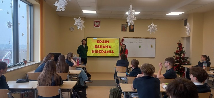 Studenci programu Erasmus Belén Zapatero Carretero i Gonzalo Prats Santori w dniu 22 stycznia przeprowadzili lekcje kulturowe dla uczniów 7 i 8 klas Publicznej Szkoły Podstawowej Zakonu Pijarów w Rzeszowie. Obecni studenci programu Erasmus wzięli udział w łącznie 4 lekcjach, prezentując historię, architekturę i kulturę Hiszpanii i organizując quiz dla uczniów. Dzięki spotkaniu uczniowie mieli niepowtarzalną okazję porozmawiać w języku hiszpańskim z jego rodowitymi użytkownikami. Dziękujemy studentom za udział.