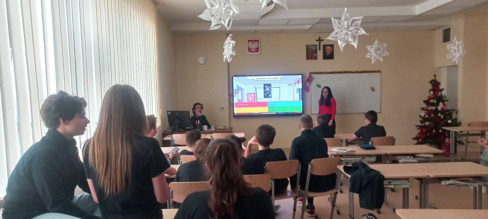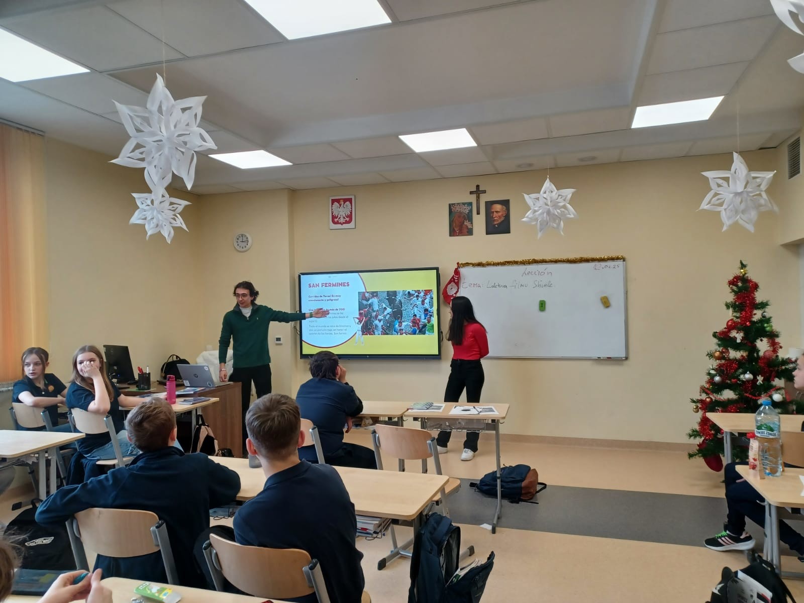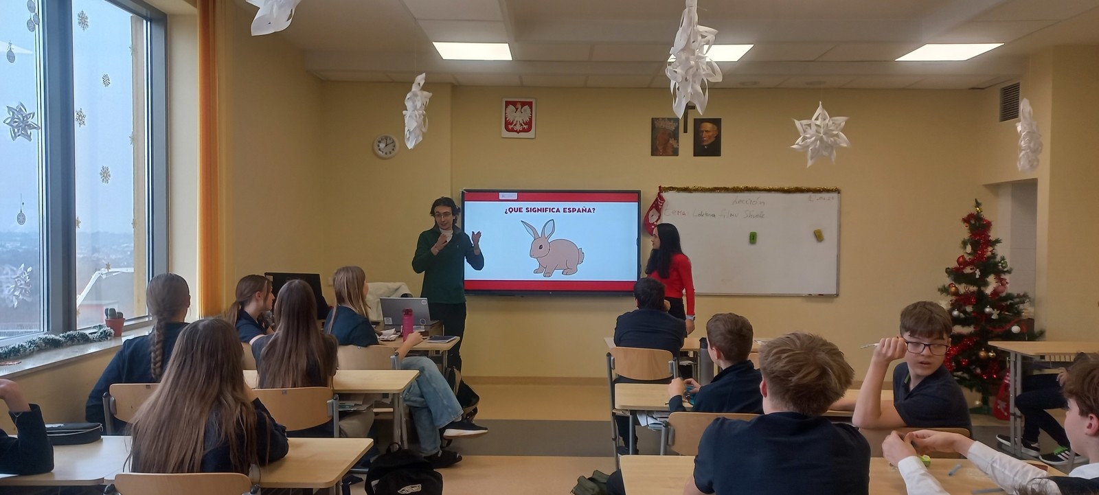 Studenci programu Erasmus Belén Zapatero Carretero i Gonzalo Prats Santori w dniu 22 stycznia przeprowadzili lekcje kulturowe dla uczniów 7 i 8 klas Publicznej Szkoły Podstawowej Zakonu Pijarów w Rzeszowie. Obecni studenci programu Erasmus wzięli udział w łącznie 4 lekcjach, prezentując historię, architekturę i kulturę Hiszpanii i organizując quiz dla uczniów. Dzięki spotkaniu uczniowie mieli niepowtarzalną okazję porozmawiać w języku hiszpańskim z jego rodowitymi użytkownikami. Dziękujemy studentom za udział.