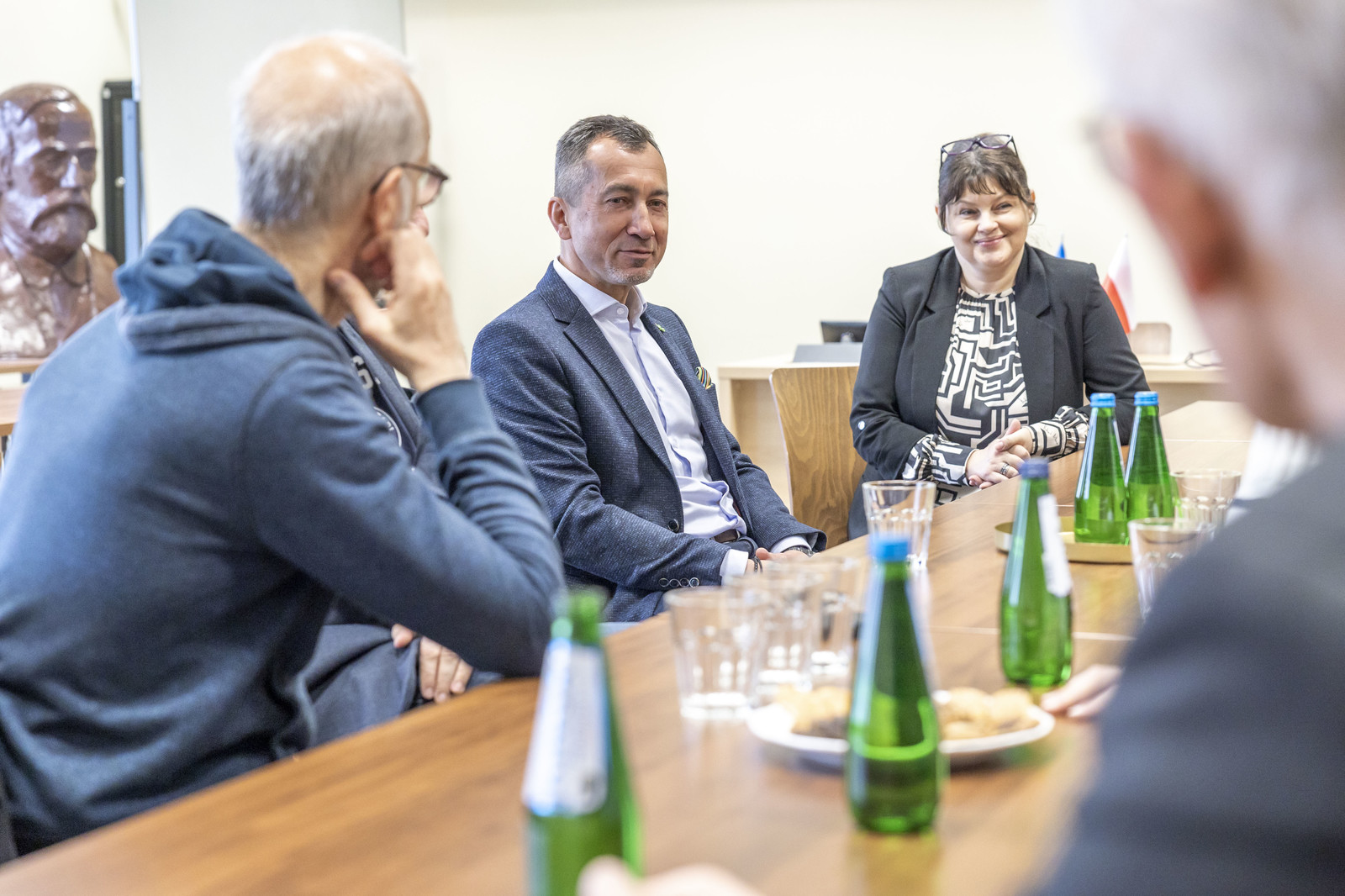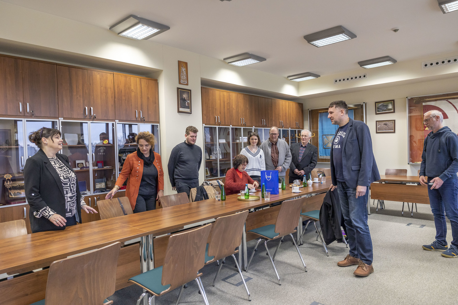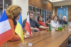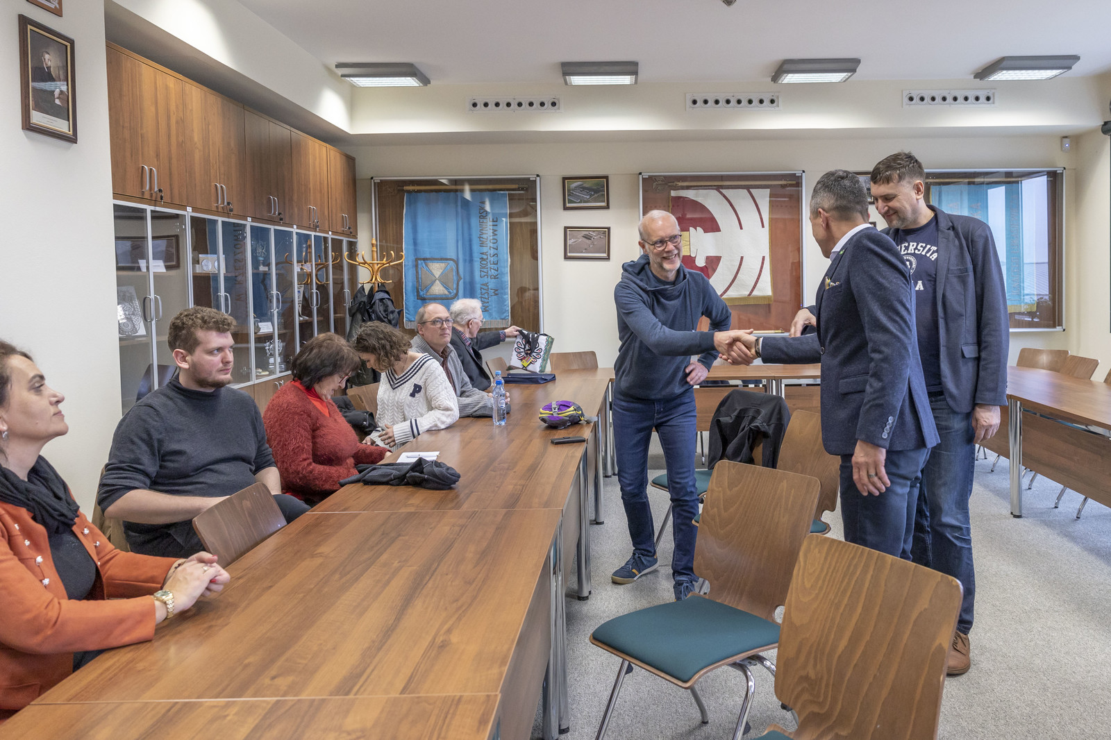 Delegacja wolontariuszy odwiedziła również Politechnikę Rzeszowską, gdzie spotkała się z Prorektorem ds. studenckich, prof. dr hab. Grzegorzem Ostaszem. W spotkaniu uczestniczył dr hab. Yuriy Bilan, prof. PRz koordynator akcji w Rzeszowie, Kierownik Działu Współpracy Międzynarodowej mgr Edyta Ptaszek, Z-ca dyrektora Centrum Języków Obcych mgr Aneta Sondej. Rozmowy dotyczyły obecnej sytuacji na Ukrainie, działań edukacyjnych wspierających podejmowanie studiów przez uchodźców oraz prezentację uczelni.