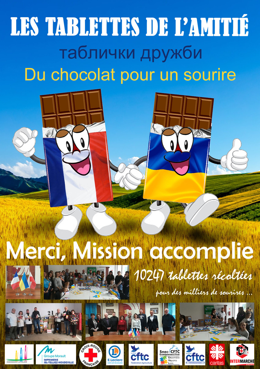 Francuska delegacja doskonale wypełniła swoje zobowiązania wobec darczyńców na rzecz dzieci z Ukrainy. Młodzież szkolna z francuskich szkół zorganizowała zbiórkę czekolady dla sierot i dzieci żołnierzy na Ukrainie. Zakupiono 10 247 tabliczek czekolady. Artykuły spożywcze zostały dostarczone przez delegację wolontariuszy do Rzeszowa, żeby dalej dotarły na Ukrainę.