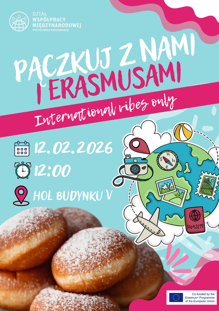 Zapraszamy do udziału w wydarzeniu, które odbędzie się 12 lutego 2026 r. o godzinie 12:00 w holu Budynku „V”. Spotkanie będzie okazją do poznania międzynarodowej społeczności akademickiej oraz możliwości, jakie oferuje program Erasmus.