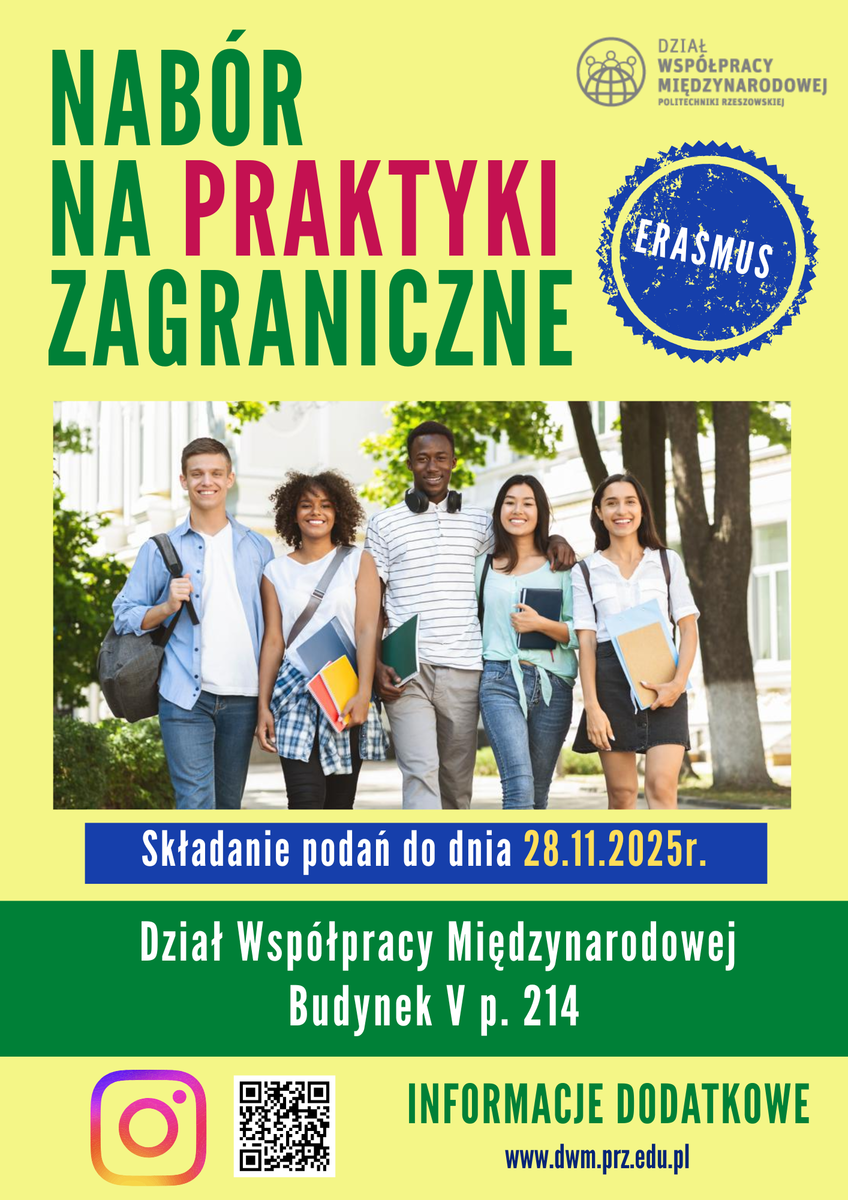 Informujemy, że trwa nabór na praktyki zagraniczne w ramach programu Erasmus+ w roku akademickim 2025/2026.
