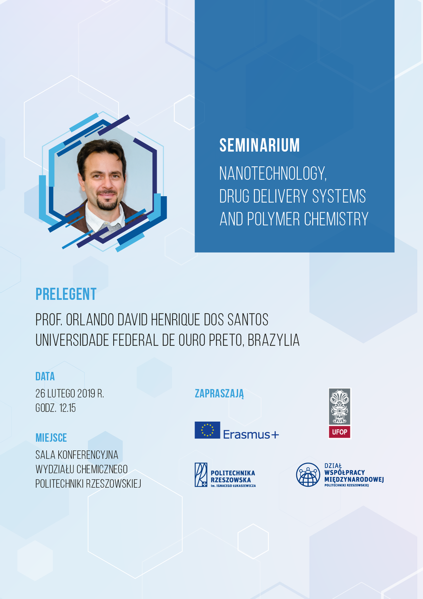Prof. Orlando Santos z uczelni brazylijskiej wygłosił wykład o tytule “Nanotechnology, drug delivery systems and polymer chemistry" podczas re-wizyty w politechnice w ostatnim tygodniu lutego. W trakcie pobytu profesor spotkał się także z władzami wydziału, oraz prorektorem ds. współpracy międzynarodowej prof. dr hab. Grzegorzem Ostaszem, który wyraził nadzieję na kontynuację tak znaczącej współpracy naukowej. Ponowne spotkanie profesorów dało możliwość wykonania badań próbek polimerów domieszkowanych nanocząstkami srebra w laboratoriach WCH.