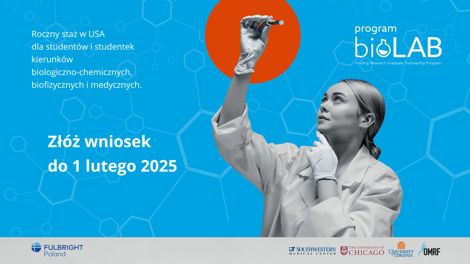 Więcej informacji znajdą Państwo na stronie internetowej Programu BioLAB: WERSJA PL – https://fulbright.edu.pl/biolab/, WERSJA EN – https://fulbright.edu.pl/biolab-program/.
