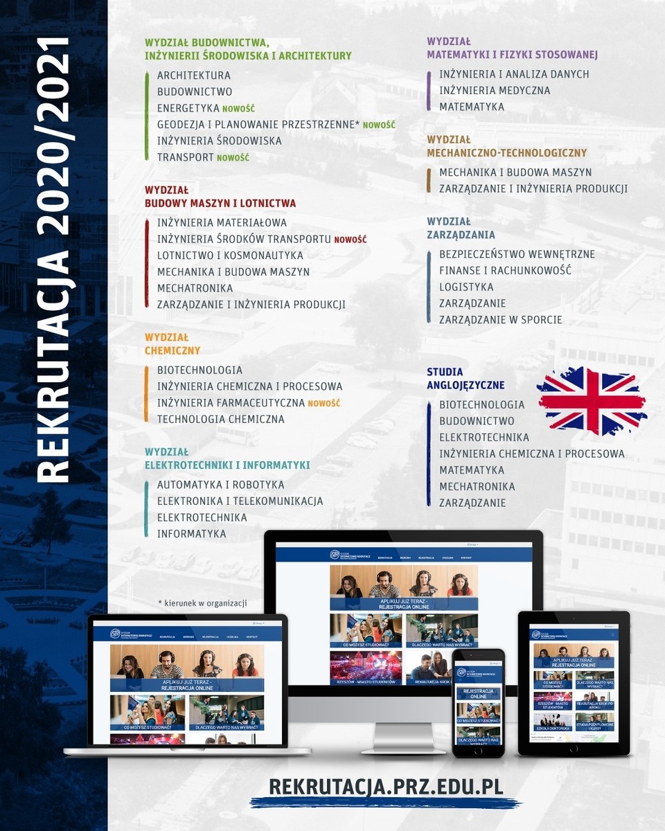 Niezbędne informacje dotyczące rekrutacji można uzyskać na stronie: rekrutacja.prz.edu.pl.