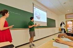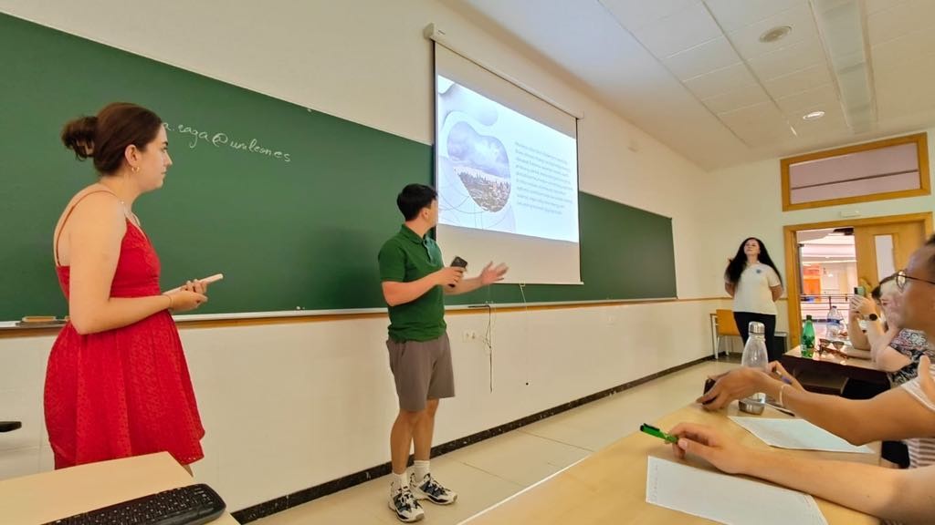 Dzień rozpoczęliśmy od intensywnej pracy projektowej – w zespołach przygotowywaliśmy materiały edukacyjne, analizowaliśmy dane, opracowywaliśmy treść i strukturę prezentacji. Zajęcia miały charakter praktyczny i warsztatowy, co sprzyjało aktywnemu zaangażowaniu i współpracy międzynarodowej. Tematem naszej grupy był temat:,, From Rain to Roots – Eco Frendly Water Solutions in the Garden”. Nasza prezentacja była poświęcona tematem związanym z nawadnianiem ogrodów, podczas upałów. Wraz ze studentkami z Krakowa i z Chorwacji przedstawiłyśmy wizję jak według nas powinno wyglądać zagospodarowanie wody deszczowej do podlewania ogrodów, w jakich porach dnia nawadnianie będzie najbardziej korzystne dla roślin oraz zmniejszy zużycie wody.