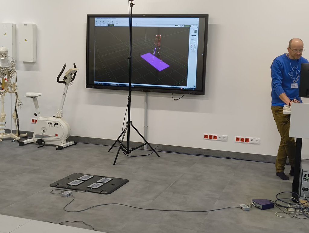 W kolejnych dniach uczestniczyliśmy w intensywnych zajęciach praktycznych prowadzonych w laboratoriach Katedry Inżynierii Biomechanicznej. Pod okiem pracowników Vilnius Tech – Juliusa Griškevičiusa, Kristiny Daunoravičienė i Jurgity Zižienė – pracowaliśmy z optycznym systemem przechwytywania ruchu BTS Engineering oraz aparaturą do pomiaru sygnałów EMG. Zespół z OTH Regensburg – Sebastian Dendorfer, Franz Süß i Lukas Gschoßmann – wprowadził nas w obsługę inercyjnego systemu Xsens oraz podstawy modelowania biomechanicznego w środowisku AnyBody. Trzeciego dnia analizowaliśmy dane z wykorzystaniem regresji wielorakiej, pracując pod kierunkiem Jolanty Pauk i Elizy Romańczuk-Ruszuk z Politechniki Białostockiej. Wykorzystane w analizach dane dotyczyły m.in. zdrowego starzenia się. Całość zwieńczyła międzynarodowa praca projektowa realizowana trzeciego i czwartego dnia.