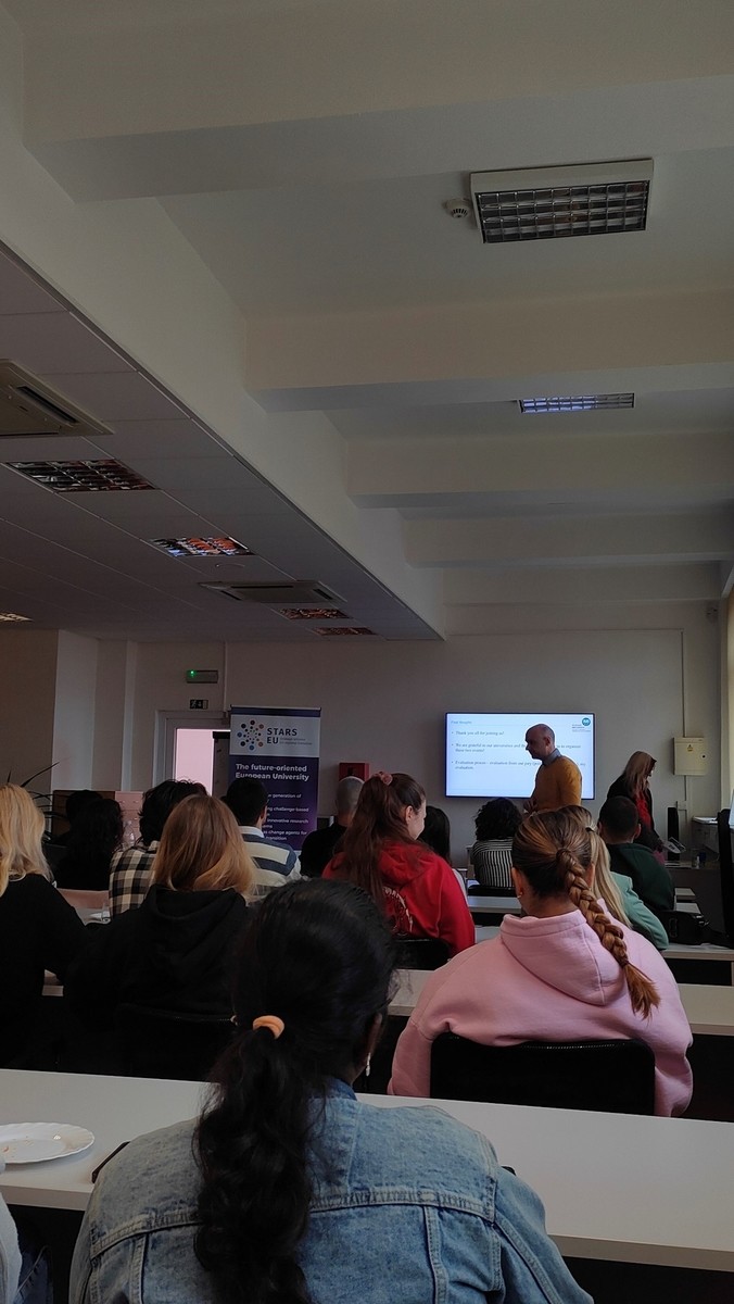 Cześć stacjonarna miała miejsce na kampusie Silesian University w Karwinie. Był to czas intensywnych zajęć praktycznych, takich jak symulacje biznesowe, warsztaty z komunikacji niewerbalnej, prace w grupach oraz indywidualne sesje coachingowe. Kulminacyjnym wydarzeniem było przygotowanie i wygłoszenie prezentacji przed jury złożonym z ekspertów. Każda grupa miała za zadanie stworzyć i zaprezentować wybrany przez siebie temat. Prezentacje te były oceniane pod kątem zawartości merytorycznej, sposobu przekazu oraz wykorzystania elementów wizualnych. Jury udzieliło uczestnikom szczegółowych informacji zwrotnych, co pozwoliło nam jeszcze bardziej doskonalić nasze umiejętności.