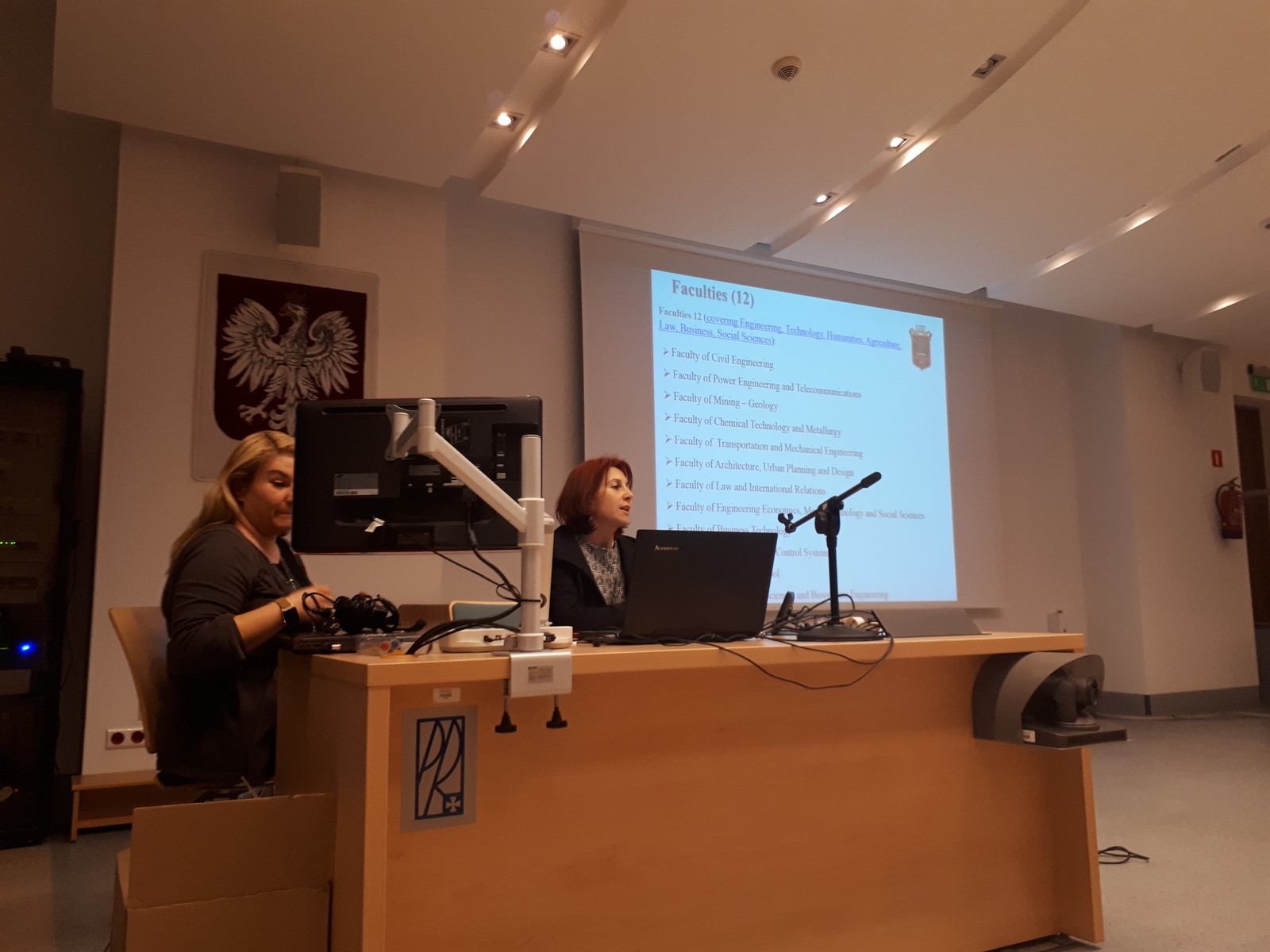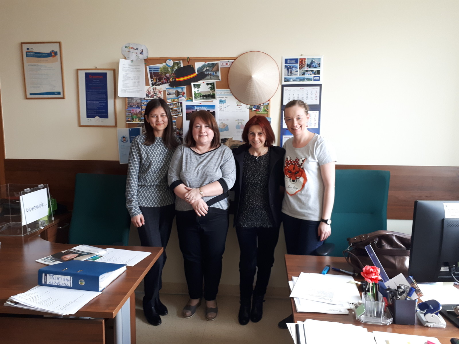 W dniach 18-22 marca nasz dział gości pracowników uczelni partnerskich w ramach programu Erasmus+ Staff Training Mobility Panią Nino Zhizhilashvili, kierownika Biura Międzynarodowego w Georgian Technical University, Gruzja oraz Panią Assel Baidildayevę, kierownika Programów Międzynarodowych w Taraz State University, Kazachstan. Szkolenie poświęcone było w głównej mierze wymianie doświadczeń na temat opracowywania treści wniosków aplikacyjnych w programie Erasmus+ dla krajów spoza Unii Europejskiej oraz nowych pomysłów na wspólne projekty w ramach Akcji 2. Dla Pań zorganizowano również zwiedzanie symulatora lotów dzięki uprzejmości dr inż. Grzegorza Kopeckiego, oraz laboratoriów na Wydziale Budownictwa Inżynierii Środowiska i Architektury przygotowanego przez Panią mgr Joannę Krasoń. Przyjazd Pani Niny i Pani Assel zbiegł się w czasie z organizowanym przez DWM International Day, dzięki czemu nasz dział włączył Panie w to wydarzenie. Szczególne podziękowanie kierujemy do Pani Niny, która przedstawiła prezentację o swojej uczelni i podkreślała ważność mobilności akademickiej w procesie kształcenia. Spotkanie z prorektorem ds. współpracy międzynarodowej prof. dr hab. Grzegorzem Ostaszem było doskonałą okazją do podsumowania dotychczasowej współpracy z partnerami z Gruzji i Kazachstanu oraz określenia kierunków dalszej współpracy.