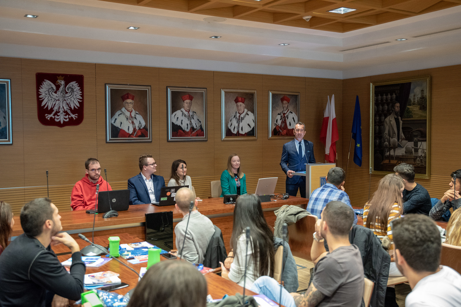 W dniu wczorajszym rok akademicki rozpoczął się nie tylko dla naszych studentów, ale również dla studentów programu Erasmus, którzy bardzo licznie w tym semestrze przyjechali do nas z Hiszpanii, Portugalii, Turcji, Włoch, Cypru i Francji. Notujemy znaczy wzrost w liczbie studentów wybierających naszą politechnikę względem ubiegłego roku akademickiego 2017/18. W ubiegłym roku przyjęliśmy 77 studentów, a tylko w rozpoczynającym się semestrze zimowym roku akademickiego 2018/19 gościmy 70-ciu studentów. Spotkanie powitalne rozpoczął prof. dr hab. Grzegorz Ostasz, prorektor ds. współpracy międzynarodowej i jednocześnie Uczelniany Koordynator Programu Erasmus, życząc nowo przybyłym studentom udanego pobytu na naszej uczelni i wielu sukcesów. Prezentację o uczelni przedstawiła Monika Stanisz podczas której studenci mogli poznać bliżej strukturę i historię uczelni, osiągnięcia naszych studentów na polu naukowym, jak również dowiedzieć się jakie obowiązują ich zasady i formalności do uzupełnienia. Działający przy politechnice s.k. ESN oraz lokalne stowarzyszenie INPRO zachęcało studentów do integracji ze środowiskiem akademickim oraz lokalnym poprzez udział w wydarzeniach kulturalnych przygotowanych z myślą o nich.
