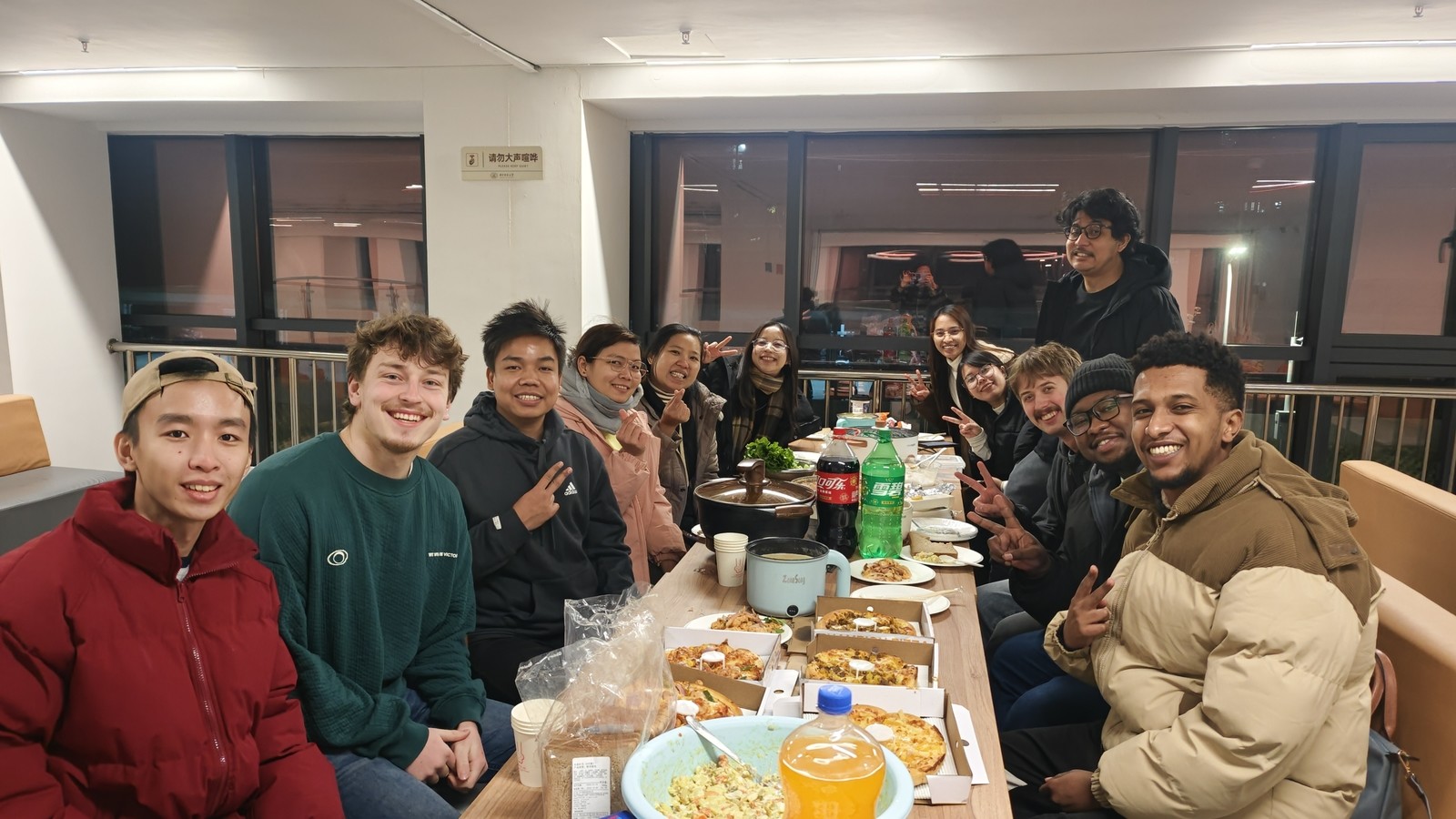 WŁ, MW: Na Uniwersytecie HUST studiuje bardzo wielu studentów z zagranicy, choć w porównaniu do liczby studentów chińskich jest to jedynie niewielki procent. Na całym uniwersytecie kształci się około 60 tysięcy osób, z czego około 3 tysiące to studenci międzynarodowi — mimo wszystko, jest to naprawdę spora liczba. Studenci przyjeżdżają z całego świata. Najwięcej osób pochodzi z Pakistanu i Turkmenistanu, ale dużą grupę stanowili również studenci z Indonezji, Malezji, Tajlandii i Myanmaru. Nie brakowało też studentów ze wszystkich krajów afrykańskich, a także z Meksyku, Brazylii, Japonii i Korei. Jeśli chodzi o Europę, najwięcej studentów było z Francji i Rosji, ale spotkaliśmy również osoby z Niemiec, Holandii i Serbii. Co ciekawe, jedyną wyraźnie nieobecną grupą byli studenci z USA i Kanady, wydaje mi się, że nie było ich tam wcale lub stanowili naprawdę niewielki odsetek. To wszystko sprawiało, że studia na HUST były niesamowitą okazją do poznania wielu kultur i ludzi z różnych części świata.