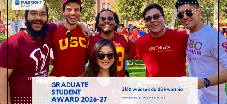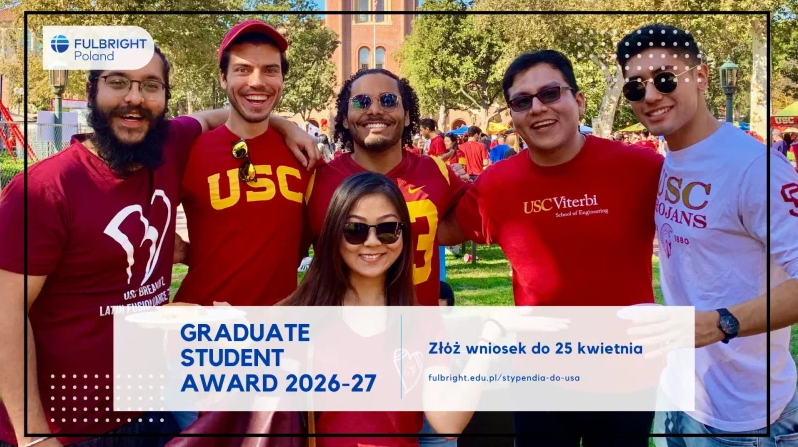 Fulbright Graduate Student Award 2026-27 to program dla osób z polskim obywatelstwem, zainteresowanych rozpoczęciem studiów drugiego lub trzeciego stopnia w USA, zapewniający finansowanie pierwszego roku nauki w kwocie do 47 000 USD, z możliwością przedłużenia na kolejny rok. Przyjmowane są wnioski na wszystkie kierunki studiów z wyłączeniem studiów medycznych wymagających bezpośredniego kontaktu z pacjentem, programów LLM (Master of Laws) oraz MBA (Master of Business Administration) za wyjątkiem programu LLM in International Human Rights Law współfinansowanego przez Komisję we współpracy z University of Notre Dame. Wyjazd jest możliwy na każdą akredytowaną uczelnię wyższą. Osoby składające wniosek muszą posiadać tytuł zawodowy magistra do czerwca w roku wyjazdu. Nabór wniosków trwa do 28 kwietnia br.