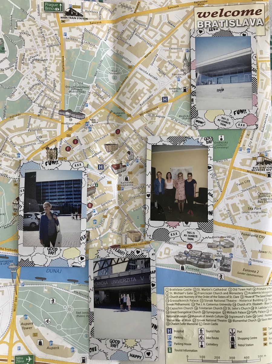 W trakcie pobytu w Uczelni partnerskiej w Bratysławie pracownice PRz odbyły spotkania m.in. z koordynatorem ds. studentów wyjeżdżających, koordynatorem ds. studentów przyjeżdżających oraz z zastępcą kierownika Działu Międzynarodowej Wymiany – Miroslavą DARNADIOVÁ. Wizyta w Uczelni partnerskiej była okazją do zwiedzenia obiektów uczelnianych i zapoznania się z warunkami nauki i życia studentów w Bratysławie. Pracownicy PRz odwiedzili m.in. Biuro Erasmus+, bibliotekę uczelnianą, poszczególne wydziały, kantynę studencką oraz akademik.