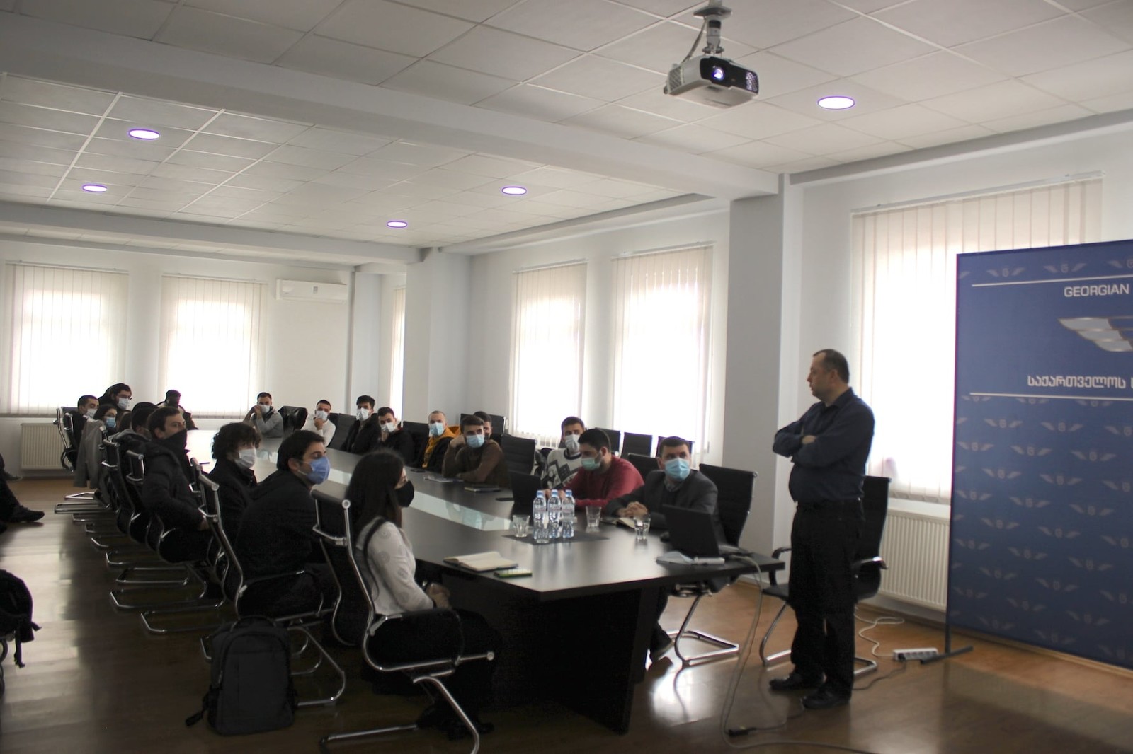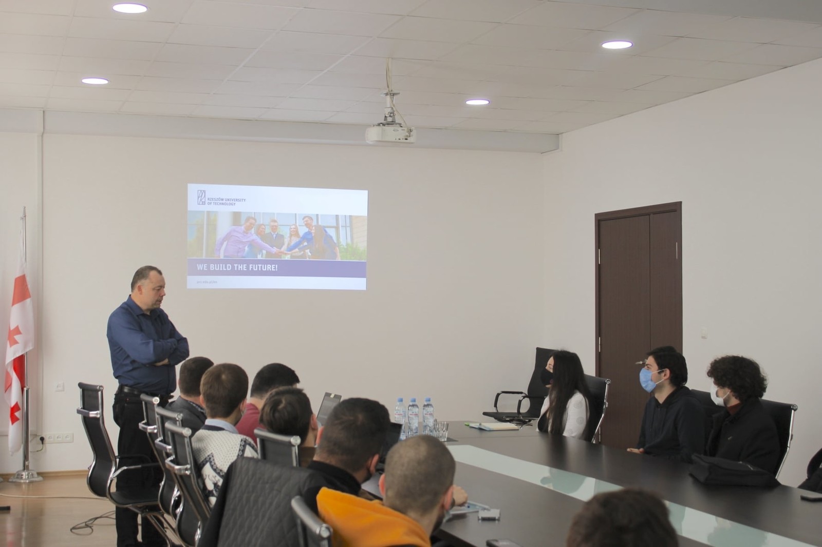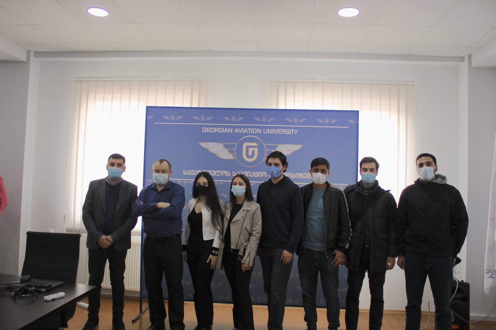 Serię wykładów o tematyce „Using video and image data processing in automatic control of the aircraft” zaplanowano dla studentów 3 roku studiów. W wykładach uczestniczył również student, który w semestrze zimowym 2021/22 uczestniczył w wymianie w ramach Erasmusa na Wydziale Budowy Maszyn i Lotnictwa PRz. Dziekan Wydziału Inżynierii dr Nika Tikanashvili oprowadził pracownika PRz po laboratoriach i centrum szkoleniowym GAU. W trakcie spotkań omówiono także możliwości dalszej współpracy w ramach programów oferowanych przez Komisję Europejską.