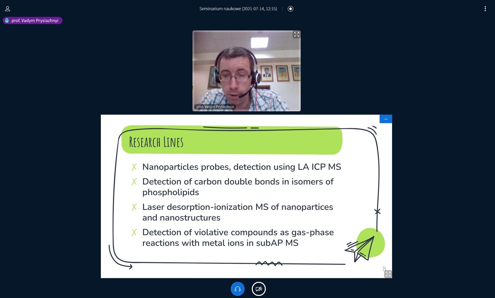 W dniach 5-16 lipca 2021 Katedra Chemii Nieorganicznej i Analitycznej gościła pracownika uczelni czeskiej dr Vadyma Prysiazhnyi w ramach programu Erasmus Staff Training Mobility. Do zadań pracownika należało uczestniczenie w codziennych zadaniach laboratoryjnych, przeprowadzenie seminarium dla grupy doktorantów oraz przygotowanie próbek do badań w uczelni macierzystej. Podjęto także rozmowy na temat możliwości współpracy naukowej.