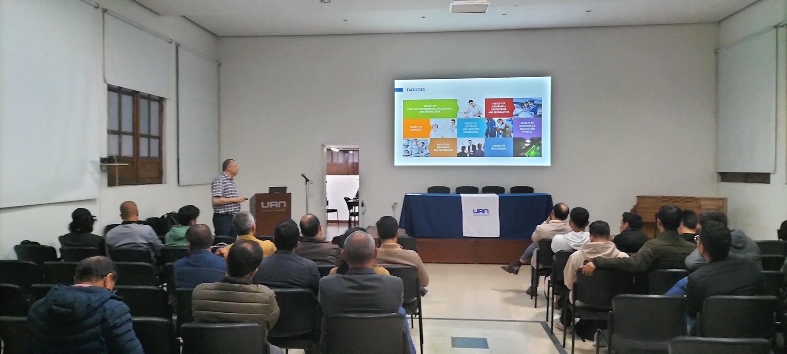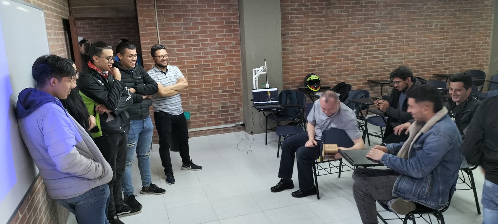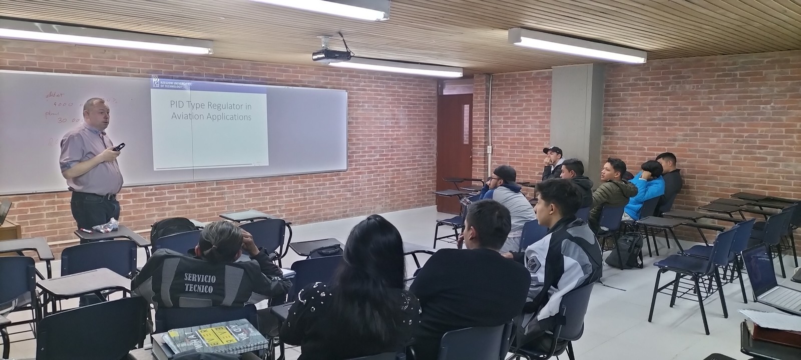 W dniach 09 i 11.05 odbyły się dwa spotkania ze studentami ze studentami wydziału inżynierii mechanicznej, elektroniki i biomedyki (Facultad de Ingeniería Mecánica, Electrónica y Biomédica) w trakcie których prezentowali oni swoje projekty zrealizowane w ramach zajęć dydaktycznych. Ponadto przeprowadzone zostały dla nich zajęcia dydaktyczne pt. Regulatory typu PID w zastosowaniach lotniczych.