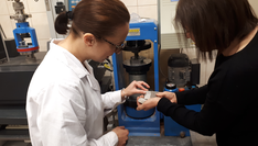 Prof. Oksana Vovk visited Laboratory of Building Materials and Laboratory of Building Physics and got acquainted with the results of investigation on compressive strength tests of building ceramics, concrete and mortars material hardness testing presented by MSc Joanna Krasoń.