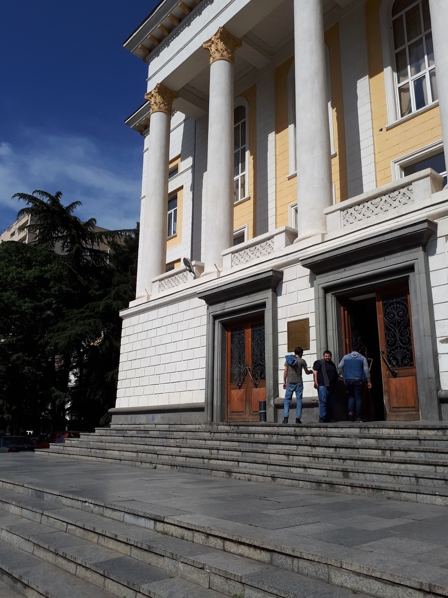 The first university, the Ivane Javakhishvili Tbilisi State University, founded in 1918 is the oldest and largest university in the South Caucasus. TSU cooperates with 70 universities in Europe in 121 different projects concerning the exchange of students and scientific teaching staff. Meetings with the project's coordinator Ms. Mariam Razmadze took place in the administration building, the oldest and the most impressive in terms of architecture. The main points of the discussion were the rules for organizing exchanges within the Erasmus programme, among others: adequacy of the selection of mobility candidates to the requirements of the European Commission, and the need to document the results of the application, the complexity of the recognition process of Georgian students' achievements by the Quality Assurance Office, methods for dissemination of project results, analysis of the "The Erasmus + regulations" document signed before the start of the project, and preparation of the Final Report.