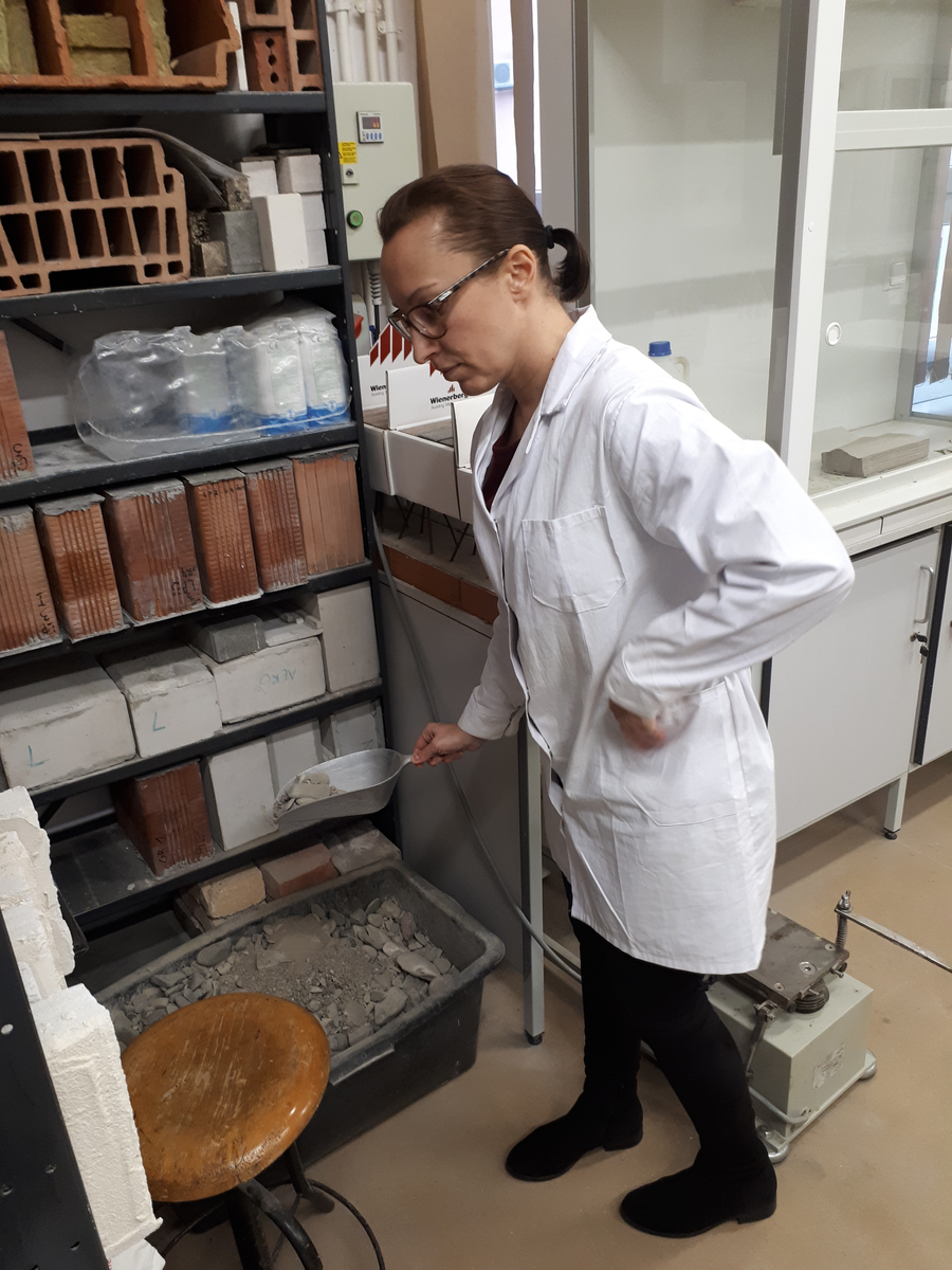 Prof. Oksana Vovk visited Laboratory of Building Materials and Laboratory of Building Physics and got acquainted with the results of investigation on compressive strength tests of building ceramics, concrete and mortars material hardness testing presented by MSc Joanna Krasoń.