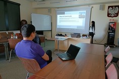 Monday's meeting began with completing the necessary formalities related to the exchange, after which each beneficiary presented home university and the scope of scientific interests in a short presentation. The next point of the programme was a tour around the university campus with an employee of the Department of International Cooperation - Konrad Marciniak which was followed by a visit to the Transport Systems Safety Laboratory at the Faculty of Mechanical Engineering and Aeronautics, where Artur Krzemiński, PhD, Eng. presented the capabilities of the truck simulator. The schedule of the visit was organized and coordinated by Monika Stanisz, MA.