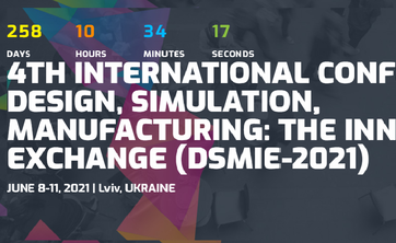 From 8 to 11 June 2021, the 4th International Conference on Design, Simulation, Production: Innovation Exchange (DSMIE-2021) will be held in Lviv.