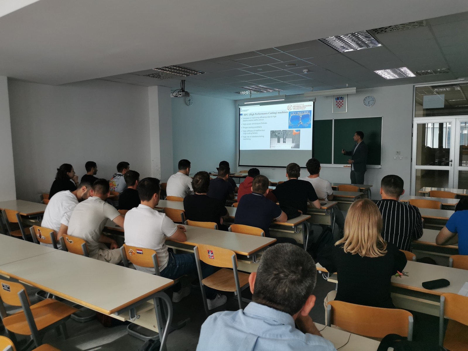 W ramach naszej wizyty przeprowadziliśmy serię wykładów dla studentów kierunku mechanicznego poruszających tematykę m.in nowych rozwiązań w dziedzinie budowy obrabiarek CNC, konstrukcji narzędzi skrawających, obróbki stopów tytanu w warunkach minimalnego smarowania, metod wytwarzania zamków łopatek silników lotniczych czy charakterystyki topografii powierzchni za pomocą parametrów 3D.