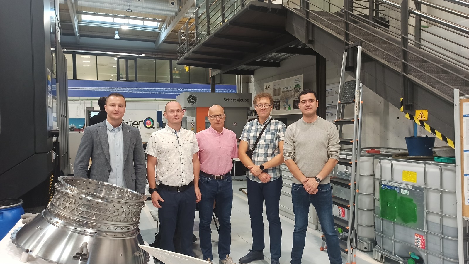 Zasadnicza część naszej wizyty w uczelni odbyła się pod opieką profesora Luisa Norberto López de Lacalle, który gościł nas w kierowanym przez siebie centrum badawczo-dydaktyczno-produkcyjnym CFAA (Centre for Advanced Aeronautical Manufacturing). Mieliśmy okazję zapoznać się ze strukturą oraz działalnością centrum jak również zwiedziliśmy laboratoria. Podczas spotkań m.in. omawialiśmy kierunki prac badawczych prowadzonych w Politechnice Rzeszowskiej i w Bilbao. Określiliśmy wspólne kierunki badań oraz tematykę potencjalnych wspólnych artykułów naukowych.