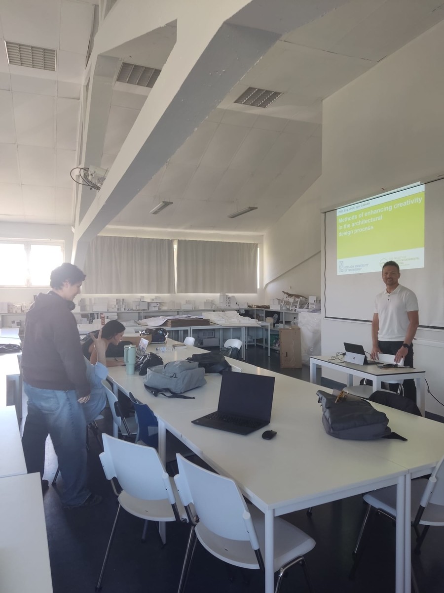 Wykłady poprzedziłem krótką prezentacją naszej Uczelni. Natomiast po wykładzie wywiązała się interesująca i merytoryczna dyskusja dotycząca prezentowanej tematyki i możliwości jej wdrożenia do warsztatu projektowego architektów przy wsparciu zaawansowanych technologii cyfrowych. W efekcie nawiązana została współpraca naukowa, która może zaowocować wspólnym artykułem naukowym.