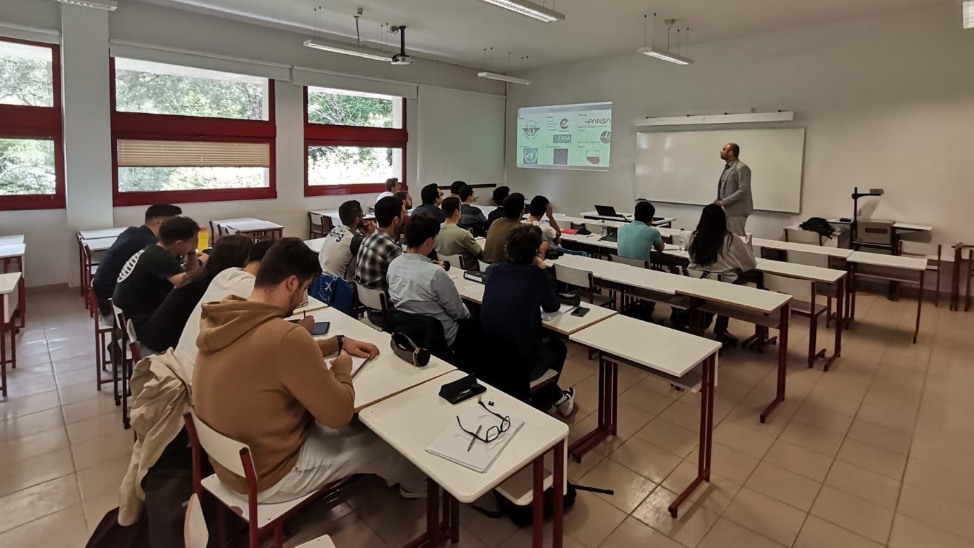 Merytoryczna część wizyty odbyła się na Wydziale Inżynierii (Faculdade de Engenharia) w Katedrze Nauk Lotniczych (Departamento de Ciências Aeroespaciais). Na miejscu zwiedziłem laboratoria, w których realizowane są prace naukowe z aerodynamiki, projektowania samolotów i silników, symulacji numerycznych. Miałem przyjemność widzieć przykłady osiągnięć naukowych, m. in. pierwszą portugalską sztuczną satelitę (PoSAT-1), bezzałogowy samolot solarny czy trójfazowy silnik pojazdów kołowych skonstruowany od podstaw. W trakcie wizyty nawiązałem relacje i wymieniłem doświadczenia z pracownikami Katedry. Sądzę, że zaowocuje to dalszą współpracą w podobnych obszarach zainteresowań. Nieodzowną częścią programu Erasmus+ było przeprowadzenie zajęć dydaktycznych, m. in. na temat Zarządzania Ruchem Lotniczym w Polsce. Z kolei zostałem zaznajomiony ze studencką działalnością, m. in. przygotowaniem do zawodów Air Cargo Challenge czy organizacją pokazów lotniczych dla mieszkańców okolicznych miejscowości.