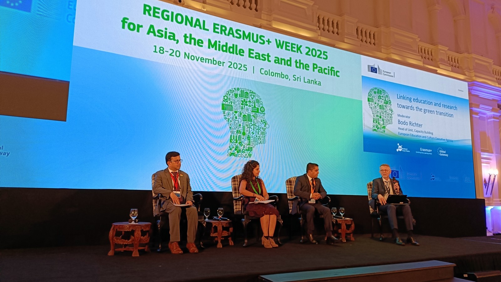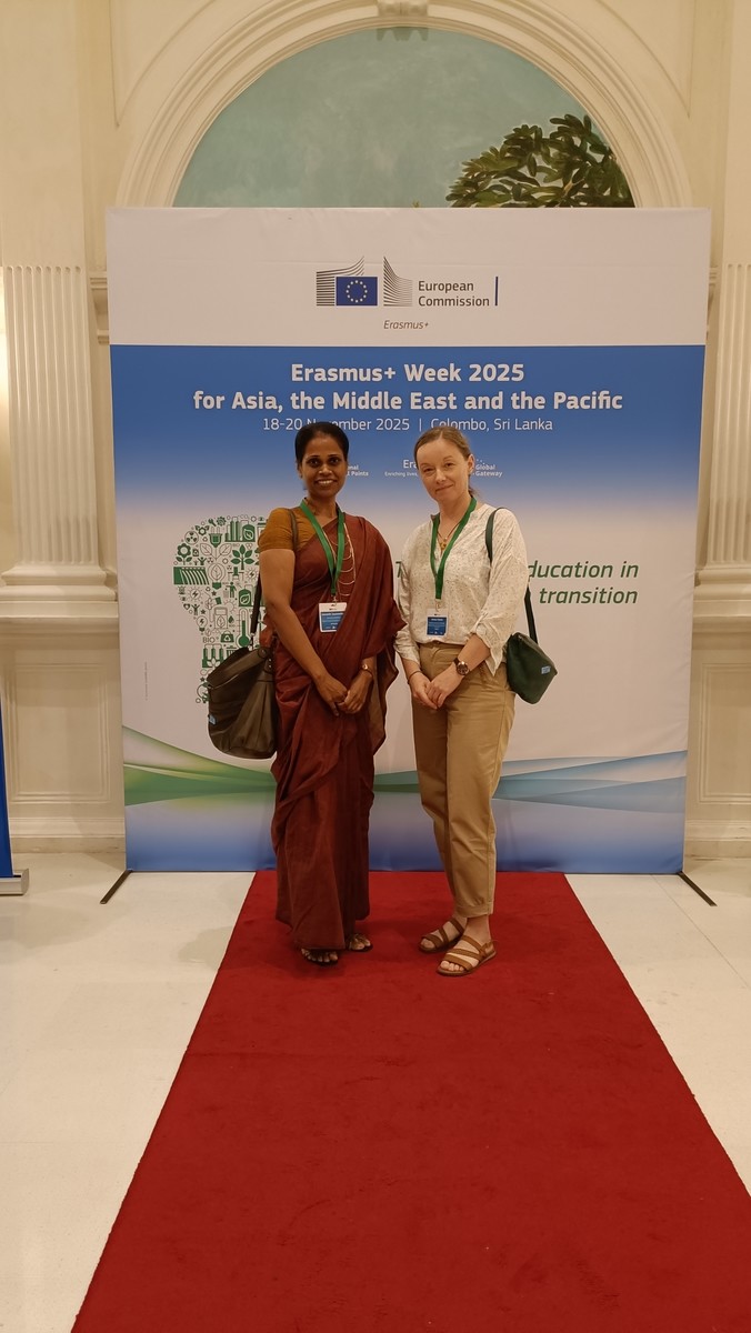 Kolejnym punktem mojej wizyty na Sri Lance było uczestnictwo w seminarium kontaktowym Regional Erasmus+ Week 2025 for Asia, the Middle East, and the Pacific, którego tematem przewodnim było “The role of education in the green transition”. Wydarzenie zorganizowane zostało przez European Commission - Directorate General for Education, Youth, Sport and Culture and the European Education and Culture Executive Agency (EC), a oficjalnie otwarła je Pani Premier Sri Lanki Dr Harini Amarasuriya. Pani Premier jako były pracownik akademicki dobrze rozumie role i potrzeby sektora edukacji. Wskazała, iż konieczna jest zmiana podejścia studentów skoncentrowanego na wyścigu po najlepsze wyniki i oceny, na podejście skoncentrowane na dzieleniu się wiedzą i szeroko rozumianej współpracy. „Dbanie o środowisko tyczy się nie tylko gospodarstw domowych, lokalnych społeczności, poszczególnych krajów, ale jest to globalna odpowiedzialność nas wszystkich” – podsumowała Dr. Amarasuriya. Głos zabrała także Carmen Moreno, ambasadorka Unii Europejskiej na Sri Lance, która mówiła o działalności uczelni wyższych na Sri Lance i o wadze ich działań w Erasmusie. Wskazała pełnienie wiodącej roli w zmienianiu podejścia do roli ekologii wśród społeczeństwa, a sektor edukacji ma ogromną rolę do spełnienia w kwestii promowania i dążenia do zielonej transformacji.
