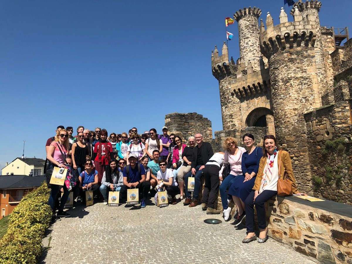We wtorek została zorganizowana wycieczka do kampusu w Ponferradzie. To niewielkie miasto, położone nad rzeką Sil, na trasie słynnego szlaku pielgrzymkowego do Santiago de Compostela. Jednym z ciekawszych zabytków jest tu usytuowany nad brzegiem rzeki średniowieczny zamek templariuszy (Castillo de los Templarios). Jego początki sięgają czasów starożytnych, kiedy to wzniesione zostały tu pierwsze umocnienia. W kolejnych latach były one sukcesywnie powiększane i przebudowywane. Najpierw przez Rzymian, a po upadku Cesarstwa przez Wizygotów. W 1178 roku miasto wraz z zamkiem zostało zasiedlone przez zakon Templariuszy. Gruntownie odrestaurowana warownia udostępniona jest obecnie dla zwiedzających. Do czasów obecnych zachowały się pozostałości XII wiecznych fortyfikacji. Są to liczne dziedzińce, barbakan, oraz wieże, w tym wzniesiona na eliptycznej podstawie trzykondygnacyjna Torre del Malvecino. Szczegółowo o historii zamków opowiedział nam przewodnik, który następnie zaprosił nas do obejrzenia kolekcji przedruków starych dokumentów, ksiąg i wczesnych wydań Biblii.