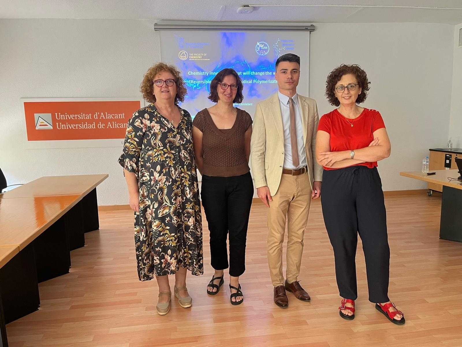 Miałem możliwość do wymiany doświadczeń i poglądów naukowych z pracownikami Wydziału Nauk - prof. Maria del Carmen Román-Martínez i prof. María Ángeles Lillo Ródenas. Głównym celem wyjazdu było upowszechnianie i dzielenie się wiedzą na temat metod polimeryzacji rodnikowej z odwracalna dezaktywacją (RDRP) oraz dyskusja na temat możliwości działań badawczych między Politechniką Rzeszowską i University of Alicante.